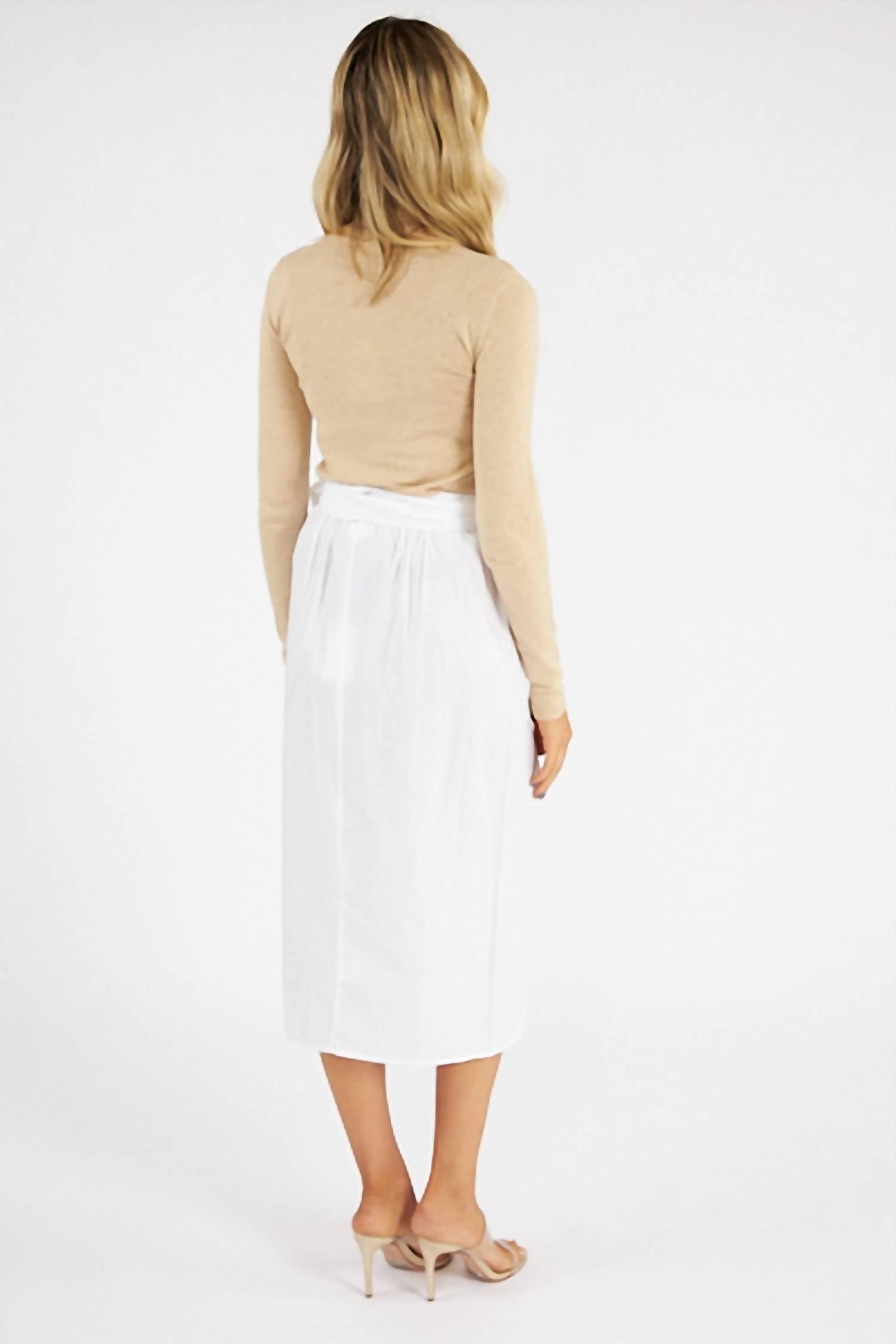 Tuck your favorite tee into this midi length skirt for an effortlessly cool look. Introducing the Women's Sabrina Skirt by XIRENA, an elegant choice in white that seamlessly blends style and comfort. This midi skirt, made from 100% cotton, features a chic paperbag design with a tie for a customizable fit. Perfect for those seeking a solid pattern to enhance their wardrobe.