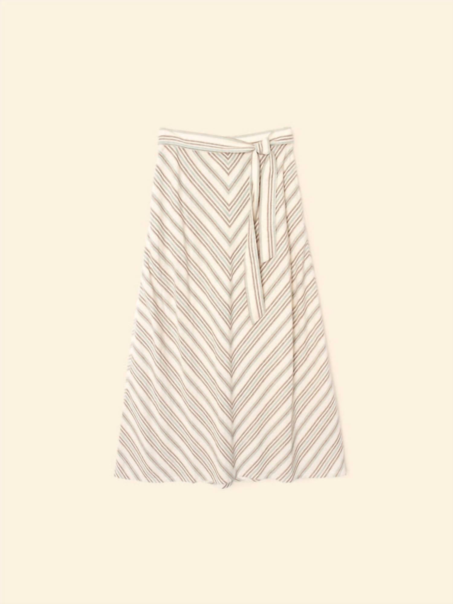 Show off just the right amount of skin in this beautifuly designed midi length skirt. Embrace effortless style with the Mikayla Midi Skirt by XIRENA, crafted in a new midweight striped ivory sand cotton for a boho chic look. This A-line skirt features a practical pull-on closure with a flat front waistband and an elasticized back for added comfort. With side seam pockets and a faux wrap detail, it's an ideal choice for a stylish spring vacation. Composition: 100% Cotton. Care: Machine wash and line dry.