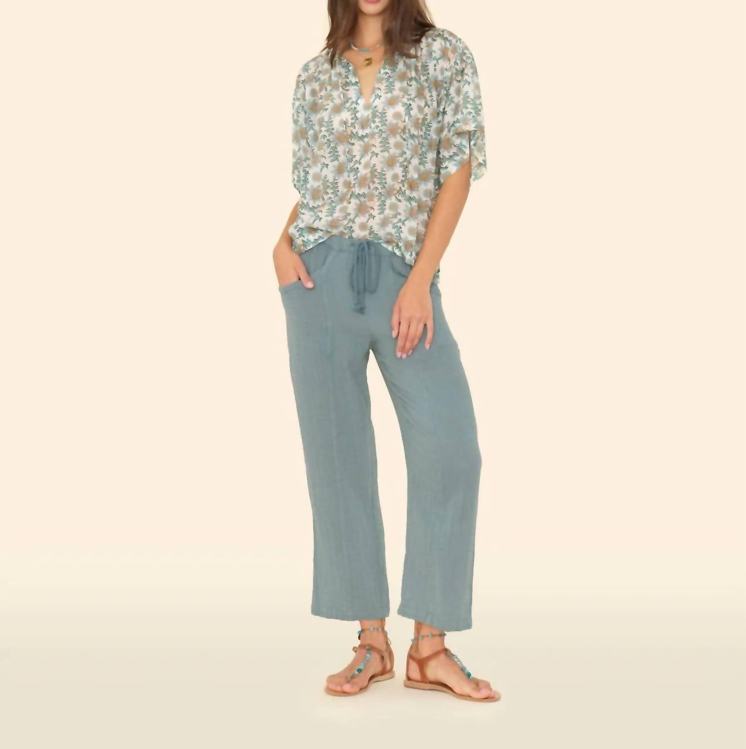 Enhance your wardrobe with this trendy cropped number, designed to blend style and practicality. The comfortable fit allows for easy all-day wear. The perfect length to pair with your favorite mules. Meet the Ozzie Pull On Pant by XIRENA, a perfect blend of comfort and style in a trendy Dusty Sage hue. With its high-rise, cropped design and a straight leg silhouette, this pant ensures a relaxed fit featuring an elastic drawstring waist and practical slant pockets. Made from 100% cotton Chelsea gauze with a gently crinkled texture, it offers an elegant, preppy look for any spring occasion. Crafted in Los Angeles, these pants have a 26.5-inch inseam and are easy to care for with a machine wash cold on a gentle cycle, then laid flat to dry. Model is 5'10" and wears a size Small.