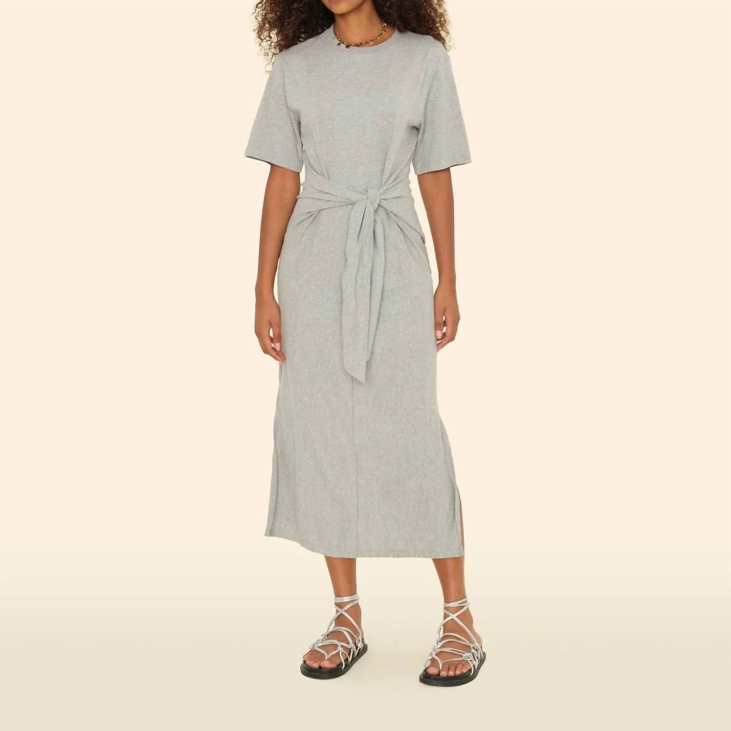 Pair with your favorite sandals for an effortlessly chic look. Meet the Tianna Dress by XIRENA, a stylish addition in heather grey designed for vacation-ready elegance. Crafted from 100% cotton jersey, this casual dress features elbow-length sleeves and side slits at the hem for a relaxed fit. A self-tie closure at the front adds a touch of minimalist charm. Made in Los Angeles, care for this versatile shift dress with a machine wash and tumble dry.