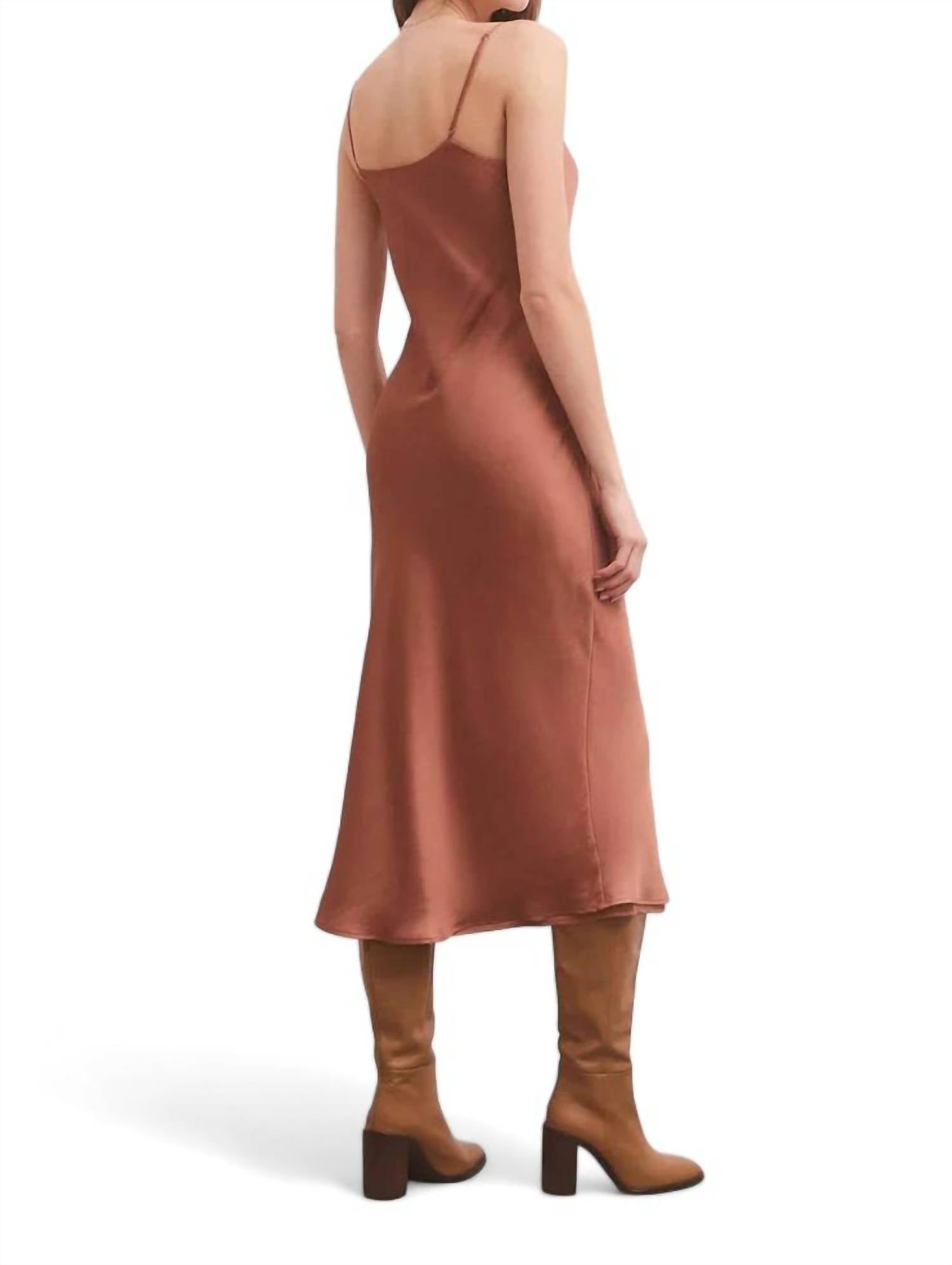Features shirring at the sweetheart neckline and adjustable straps for a customizable fit. It is fully lined and crafted from Luxe Sheen fabric, composed of 100% polyester. For care, it should be hand washed cold. Designed in a fit-and-flare silhouette, the model wearing a size Small.