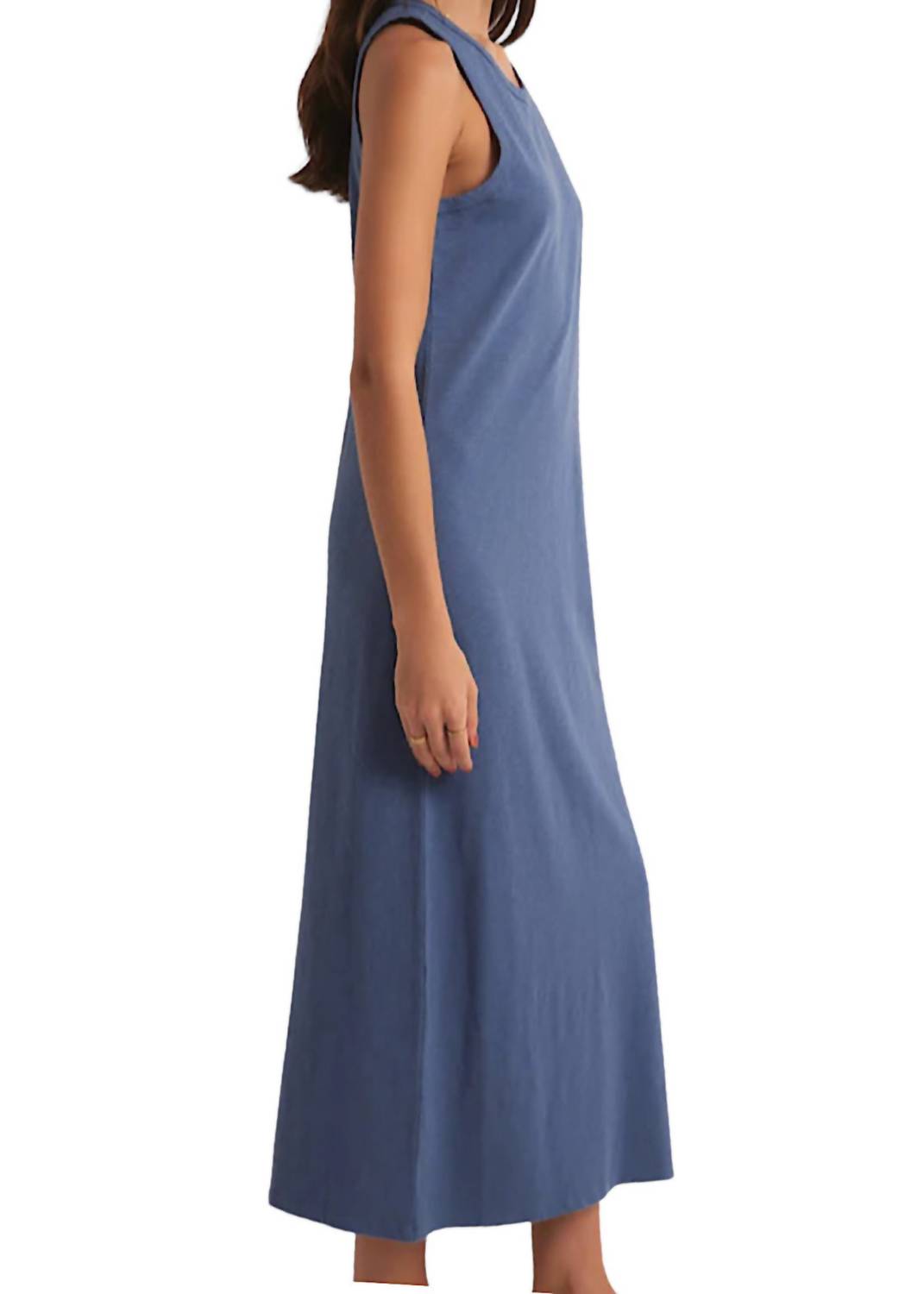 This Mystic Midi Dress is a sleeveless shift dress made from 100% cotton. It features a scoopneck, tank style, and a pull-on design, offering versatility for casual or dressed-up occasions.