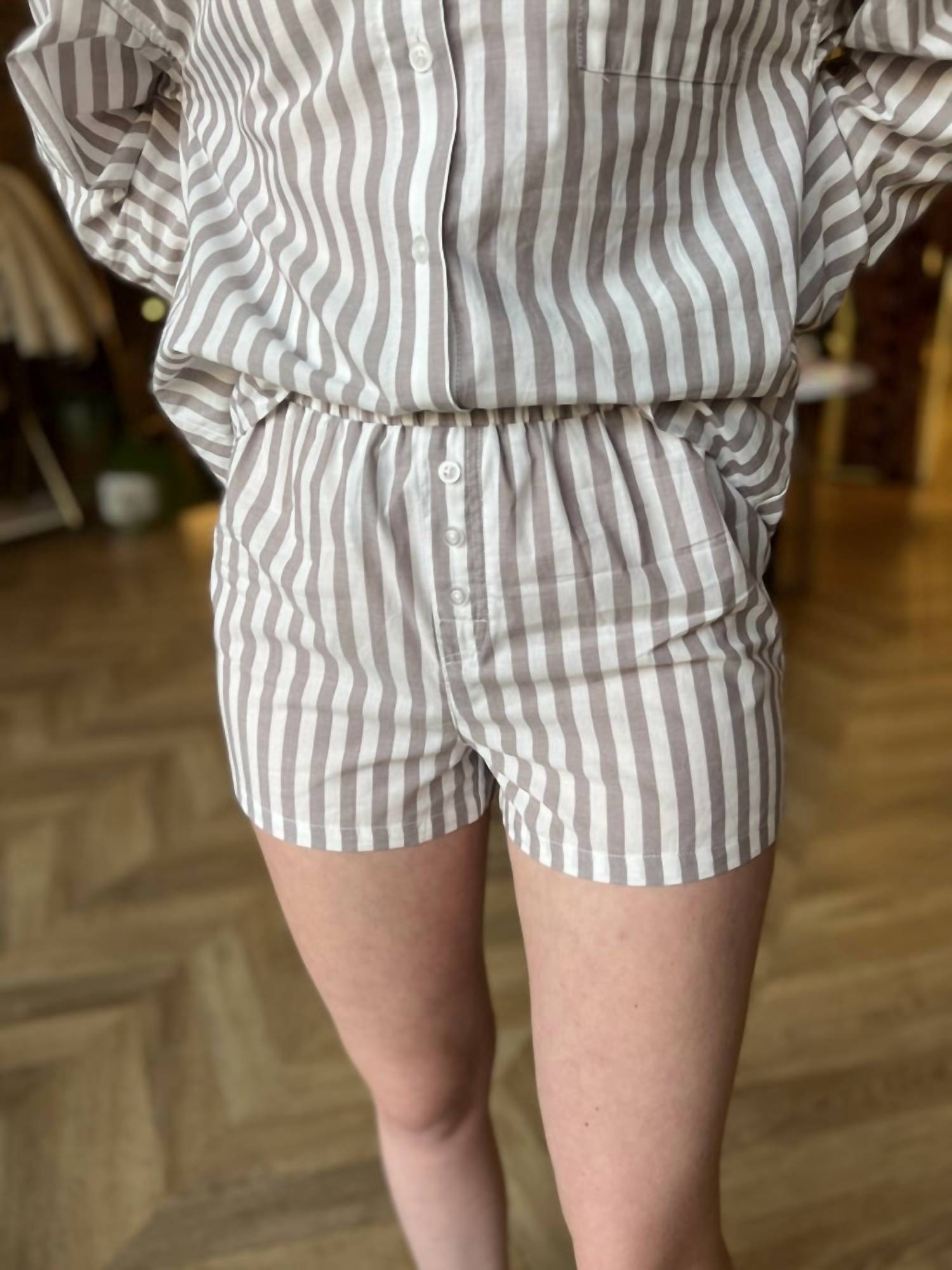A match made in heaven. This two-piece set is so cute, you'll wish you could wear it out of the house! Did we mention how comfortable it is, too? You may want two sets! The pull-on Co-ed Stripe Boxer is relaxed and oh-so-comfy. Made with a blend of soft and breathable cotton and polyester for ultimate comfort. Dusty taupe colorway adds a subtle yet edgy touch to any outfit. Loose fit allows for a relaxed and comfortable feel while still making a fashionable statement.