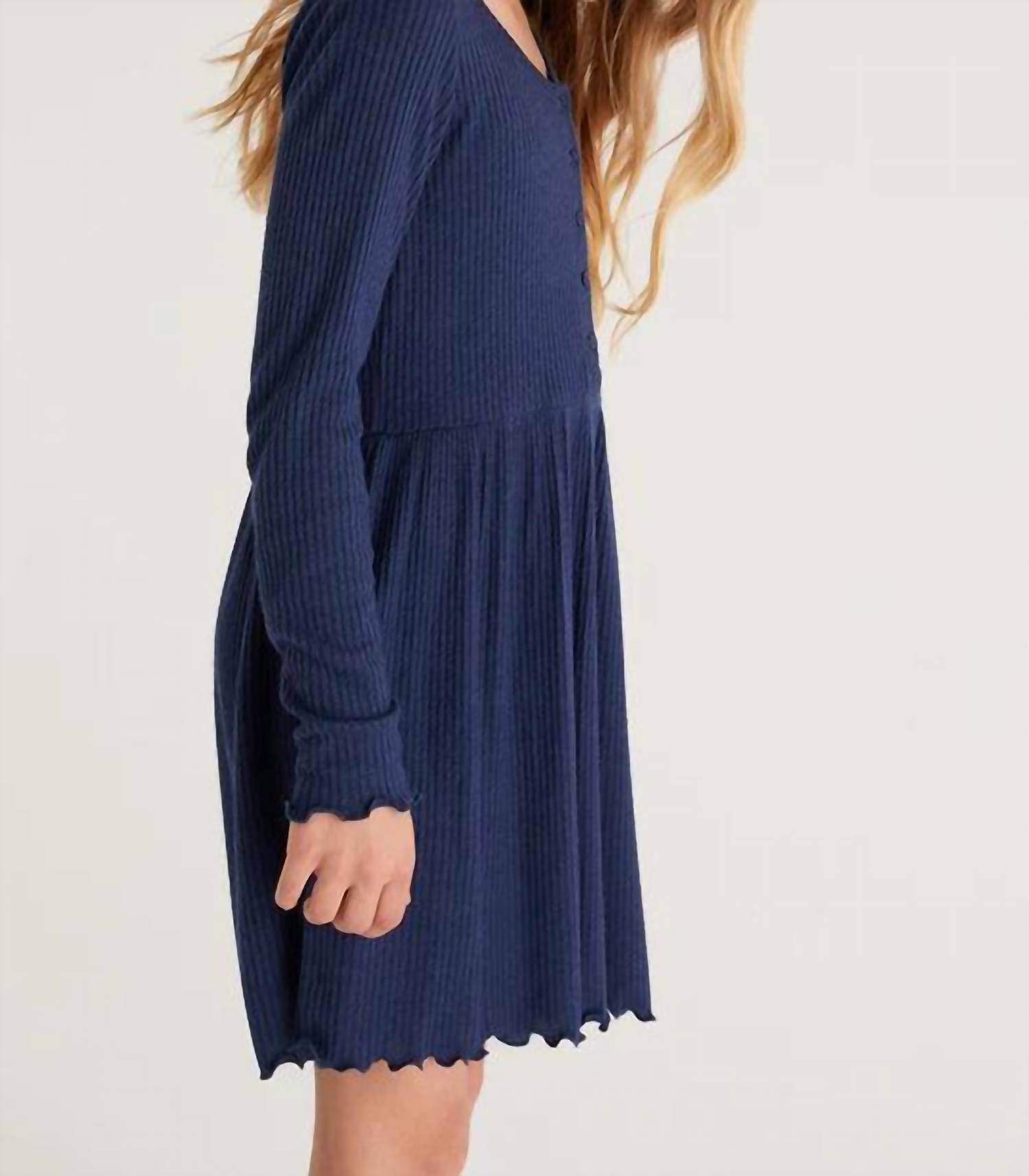 The flowy Girls Claire Rib Dress is made from our softly textured rib fabric, with a relaxed fit and slim sleeves.