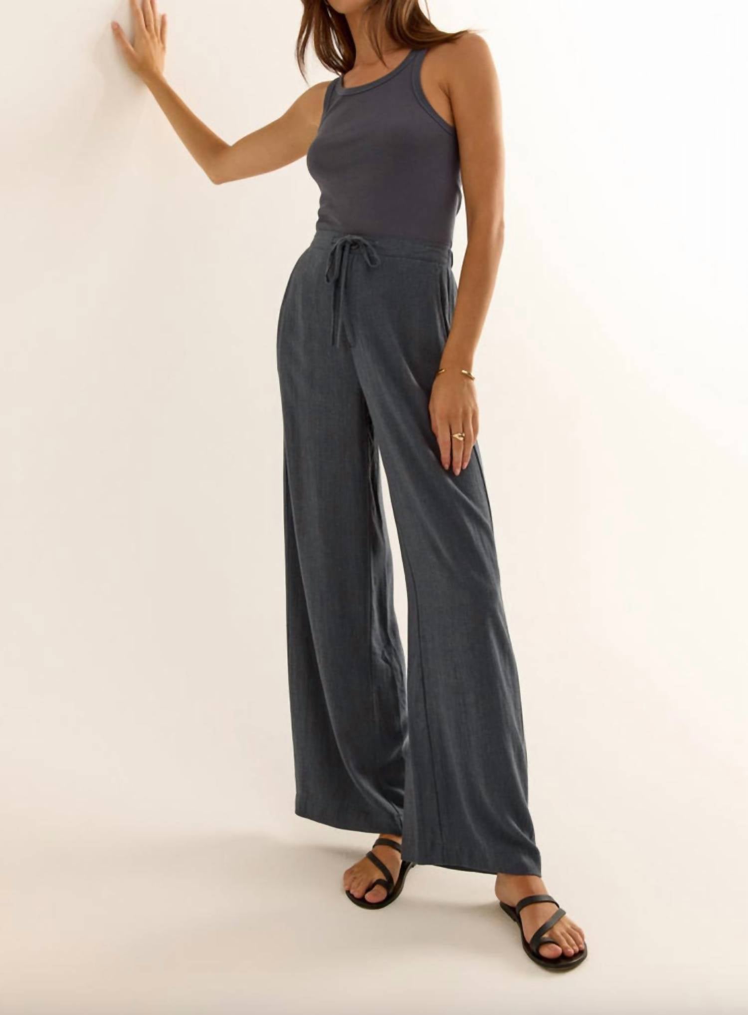 The Cortez Pant is made with an elevated linen blend fabric to keep you cool on on warm days. Regular fit. 86% Rayon, 14% Linen. Wide leg pant. Button closure and zip fly. Mid-weight woven. Unlined. Machine wash cold, hang to dry, warm iron if needed.