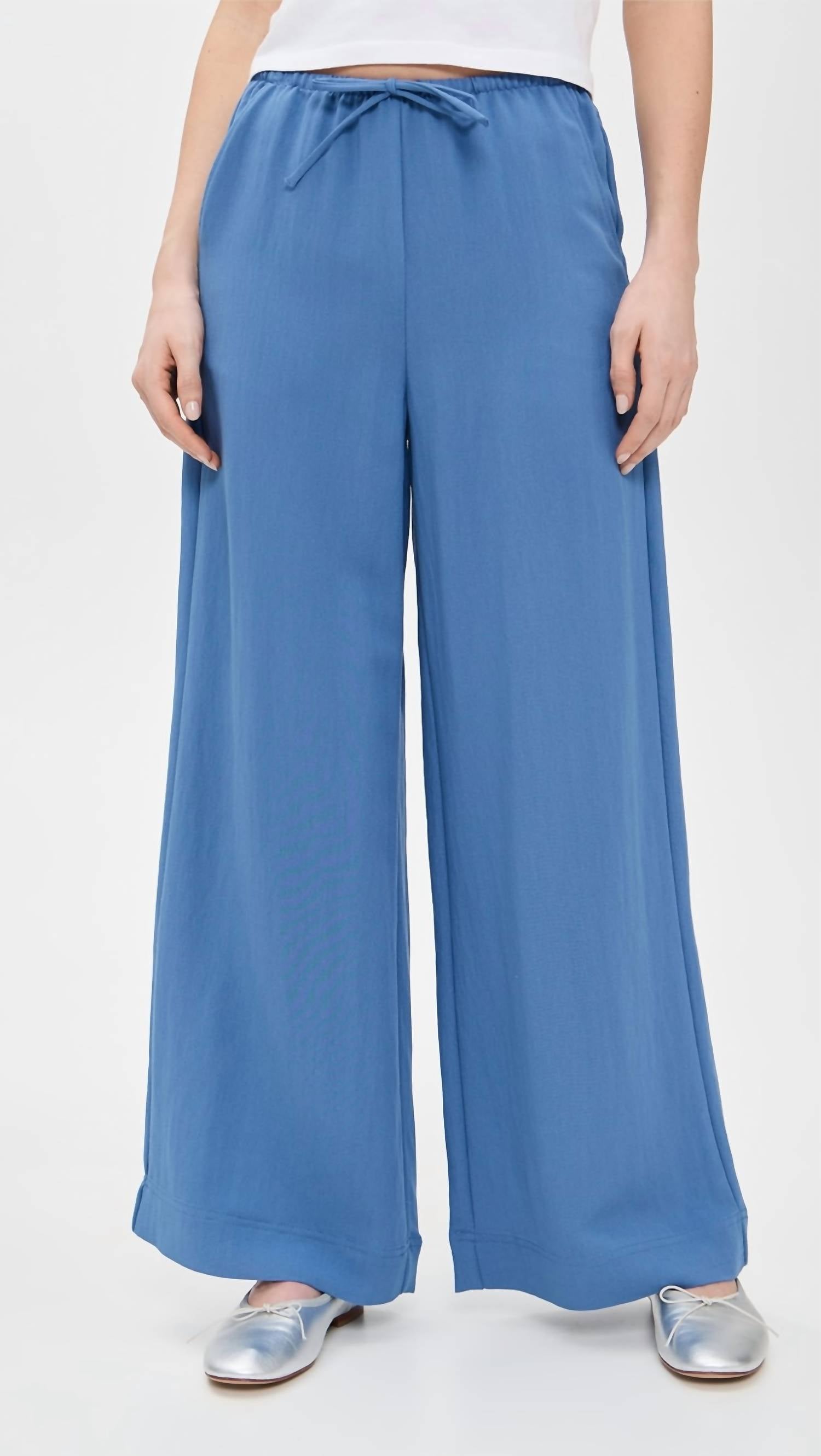 Elevate your casual wardrobe with the Z SUPPLY Soleil Pants in Riviera, a chic addition perfect for both lounging and outings. These full-length, wide-leg pants feature a relaxed fit with a mid-rise waist, tied comfortably with a tie closure. Crafted from an airy textured fabric composed of 90% Rayon and 10% Nylon, they offer a luxurious feel while being lined for added comfort. Practical side seam pockets complete the look, and you can easily care for them by machine washing cold and line drying.