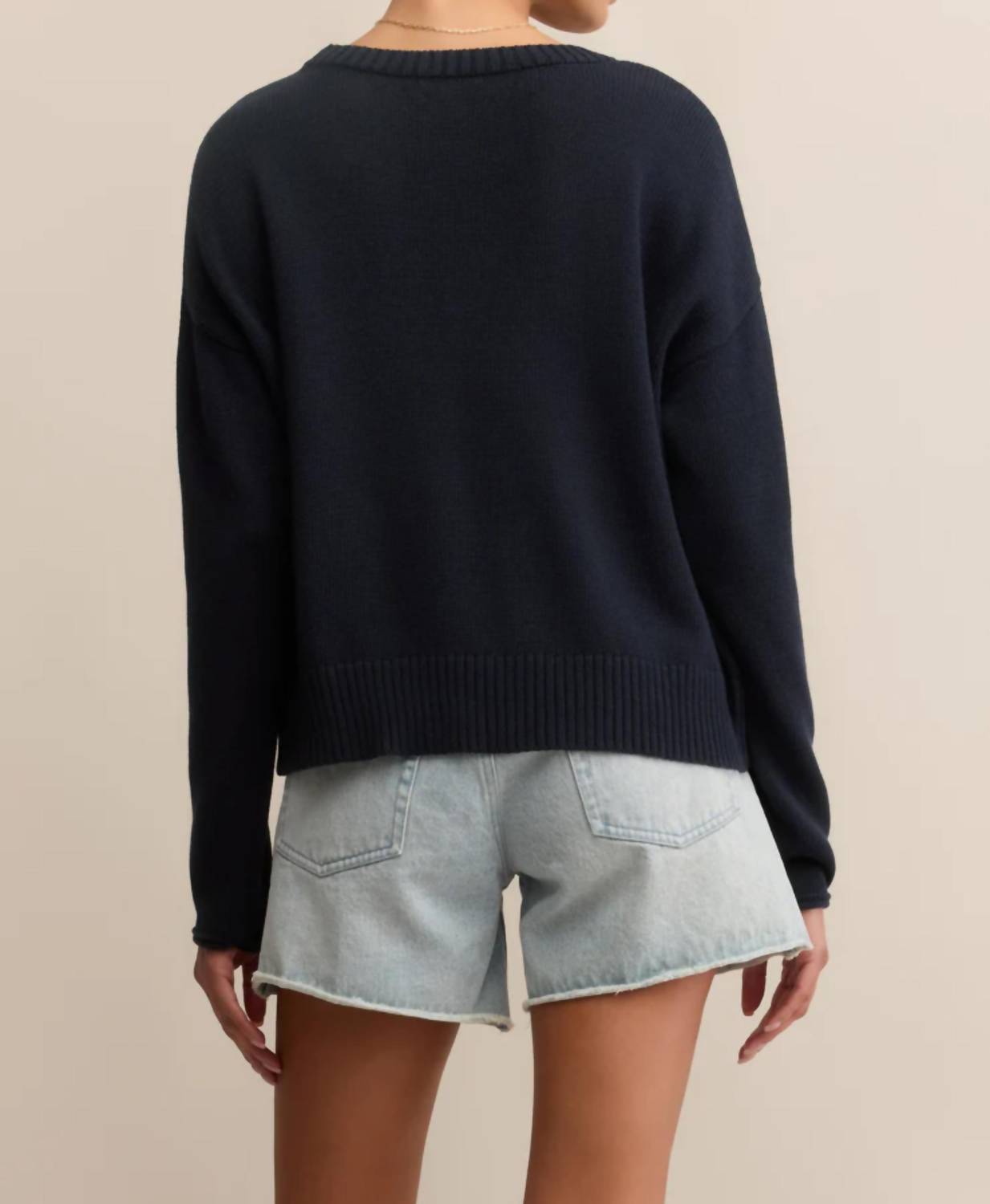 Experience the perfect blend of comfort and style with this trendy crew neck sweater, designed to effortlessly elevate your wardrobe. Pair it with your favorite denim and loafers for the perfect look. Introducing the Sienna Patriot Sweater by Z Supply, a stylish addition perfect for a preppy Fall Game Day look. This Eclipse-colored sweater features long sleeves and a classic crewneck, crafted from 100% cotton using Sienna Yarns for a soft and relaxed fit. It showcases a lightweight design with a gingham pattern and heavy soft wash finish. Closure: Pull on. Care instructions specify hand washing and line drying to maintain its pristine condition.