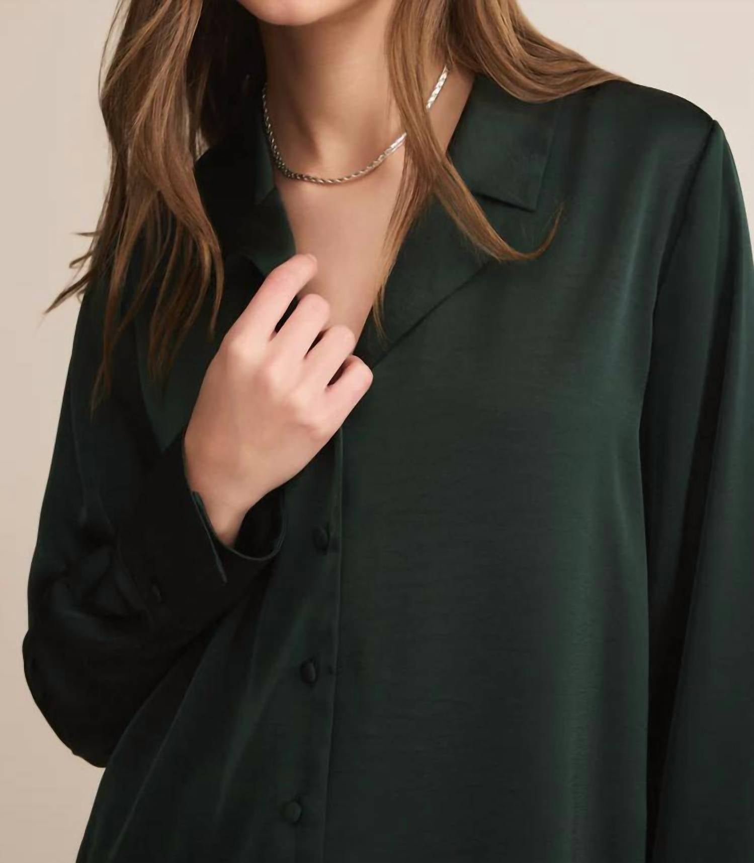 This button down shirt is comfortable yet polished. Experience the elegance of the Ana Satin Button Up by Z Supply, a sophisticated piece in Garland Green designed for versatile wear. This top features long sleeves and a collared neckline, crafted from luxe satin 100% polyester. Its fluid drape and understated sheen are enhanced by a button front closure. Care for this chic staple by hand washing cold and hanging to dry or opting for dry cleaning.