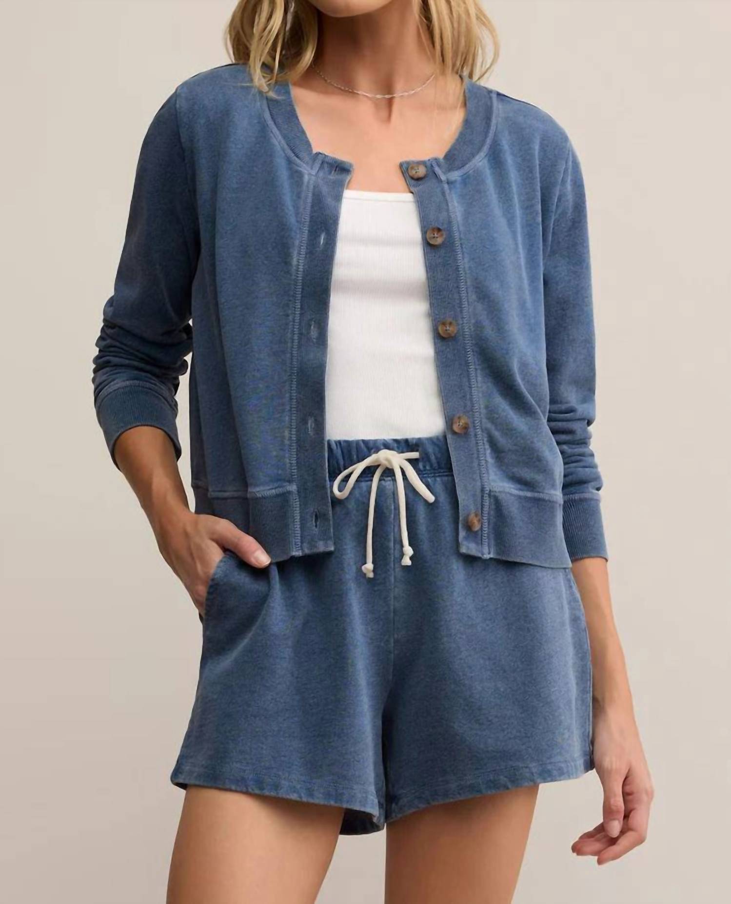 This cardigan will be a sweater-rotation favorite. Meet the Daily Knit Denim Cardigan from Z Supply, a blend of comfort and casual chic in a timeless blue shade. This cardigan features long sleeves and crafted with knit denim French terry, composed of 85% cotton and 15% polyester for a midweight feel that's perfect for travel and laid-back summer days. Closure is achieved with buttons and it offers a versatile crew neck silhouette. For care, it is recommended to machine wash and lay flat to dry, ensuring this relaxed fit piece remains a staple in your preppy wardrobe.