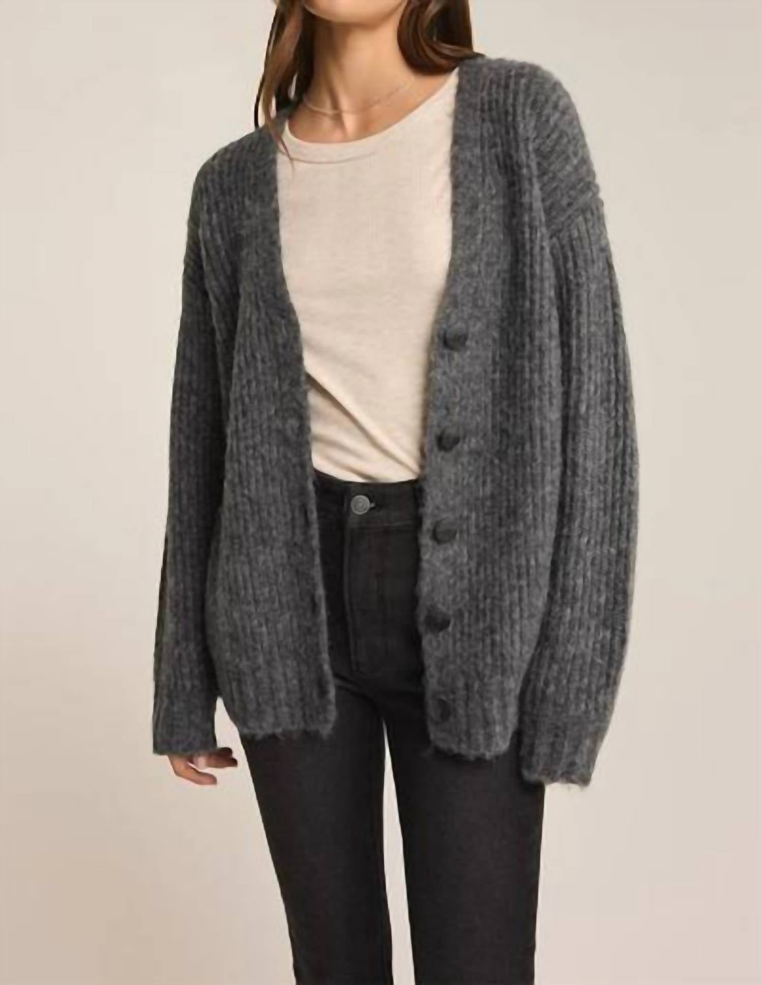 A timeless v-neck sweater that works season after season. Discover the ultimate coziness with the Josie Cozy Cardigan by Z Supply, perfect for adding a touch of warmth and style to your fall wardrobe. This long sleeve cardigan is expertly crafted from a blend of 45% Acrylic, 35% Nylon, and 20% Polyester in a midweight sweater knit, ensuring both comfort and durability. Featuring a solid charcoal heather color and a versatile button closure with faux horn buttons, it's ideal for vacation or Thanksgiving gatherings. Care instructions include machine washing and laying flat to dry, maintaining its soft texture and relaxed fit.