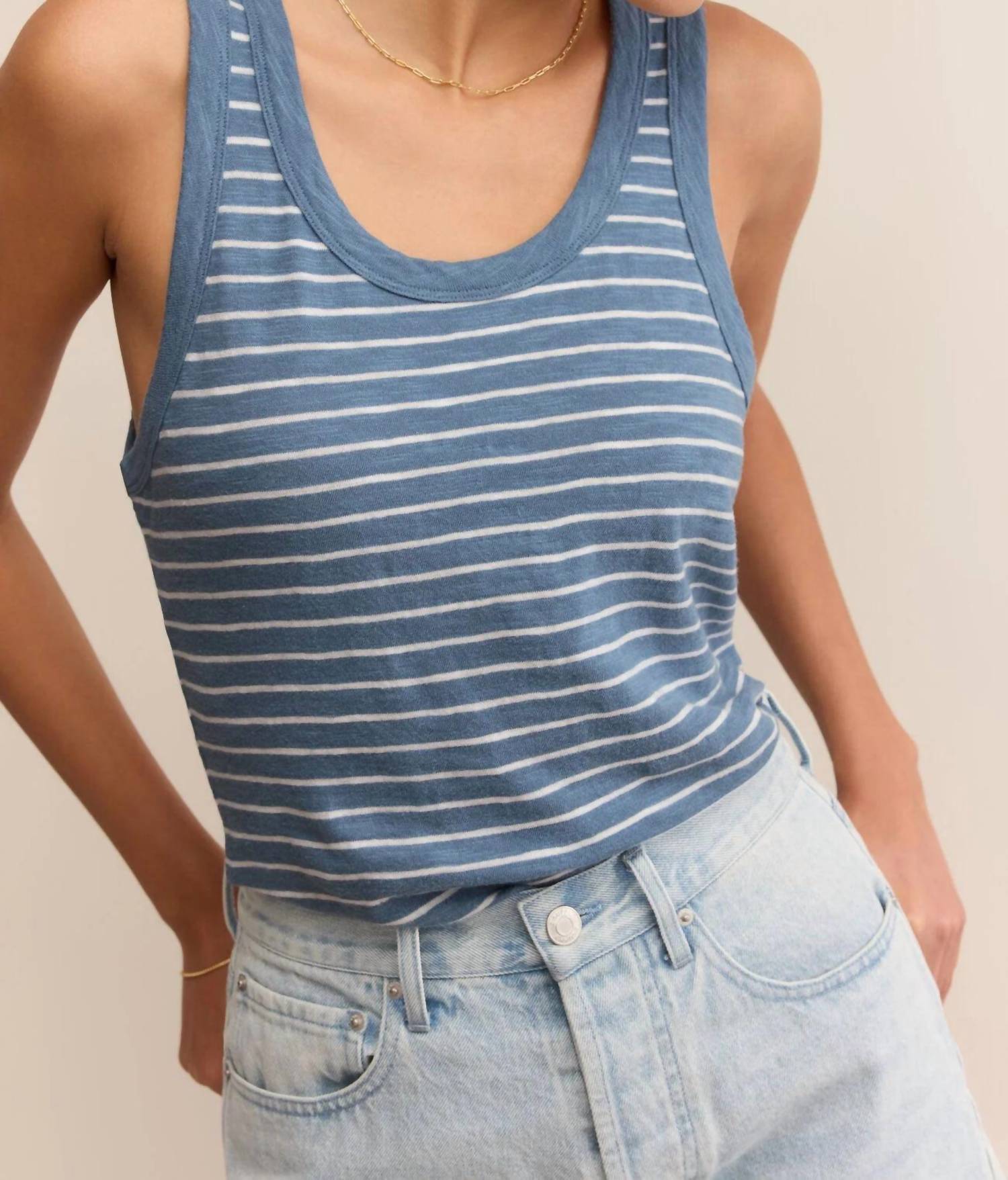 This classic tank top is perfect for layering and cute enough to wear on its own. Discover Z Supply's Perfect Striped Tank, a stylish choice to elevate your casual repertoire. This sleeveless tank boasts a scoop neck and is crafted from 100% cotton, ensuring a lightweight, breathable fit. With its pull-on design, this nautical-inspired piece in Boathouse stripes is perfect for summer outings or layering. Care is a breeze with machine wash cold and tumble dry low instructions, making it a practical addition to any wardrobe.