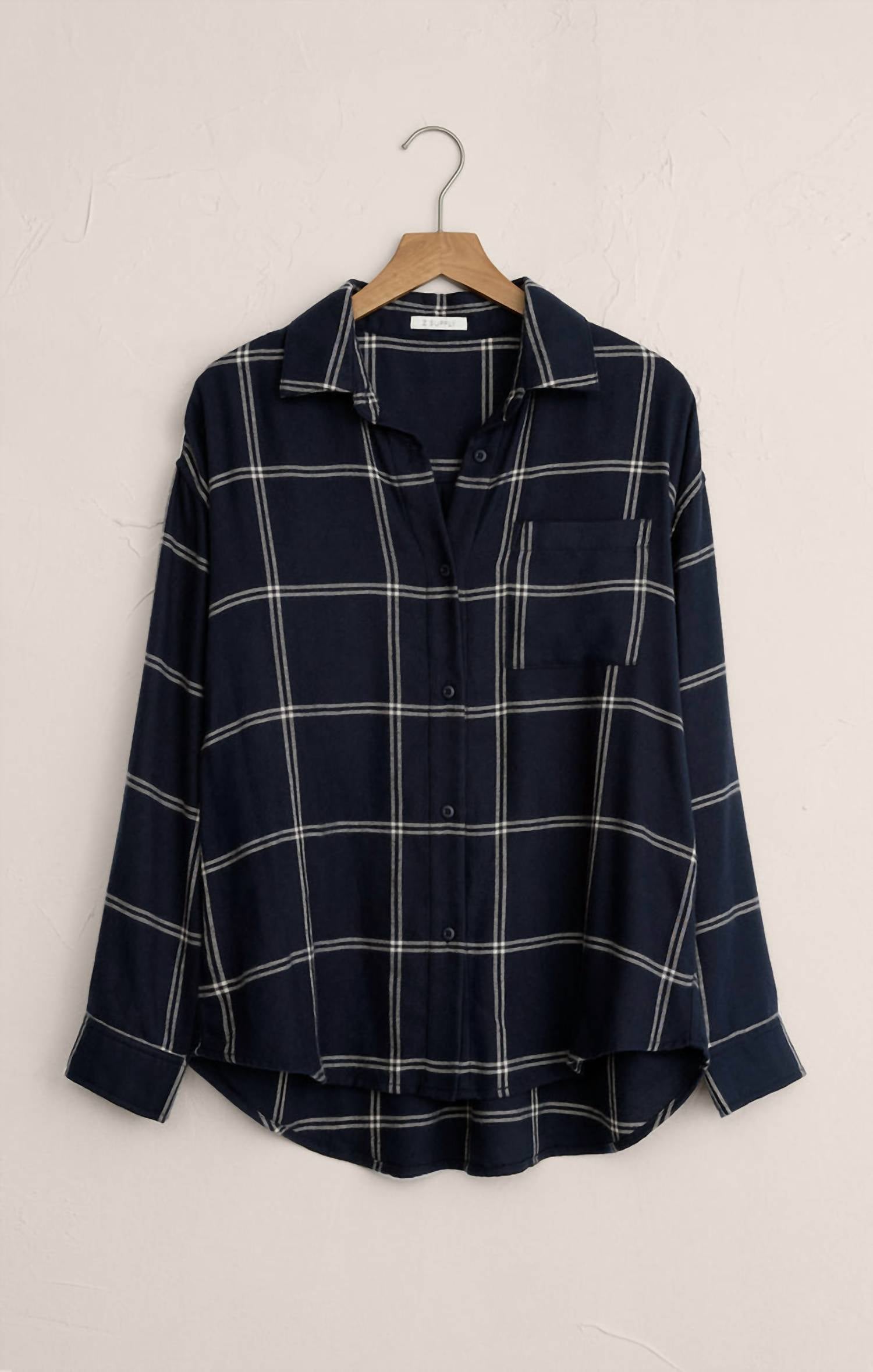 Perfectly tailored and soft to the touch. Introducing the River Plaid Button Up Shirt by Z Supply, a perfect blend of style and comfort in a striking Blue Sapphire plaid pattern. This button-front top features a collared neckline and long sleeves, crafted from buttery soft Rayon Flannel Shirting comprised of 65% Rayon and 35% Polyester. With a regular fit and a 27-inch length, it includes a practical chest pocket for added convenience. Designed for effortless care, machine wash cold and hang to dry, with a warm iron if needed.