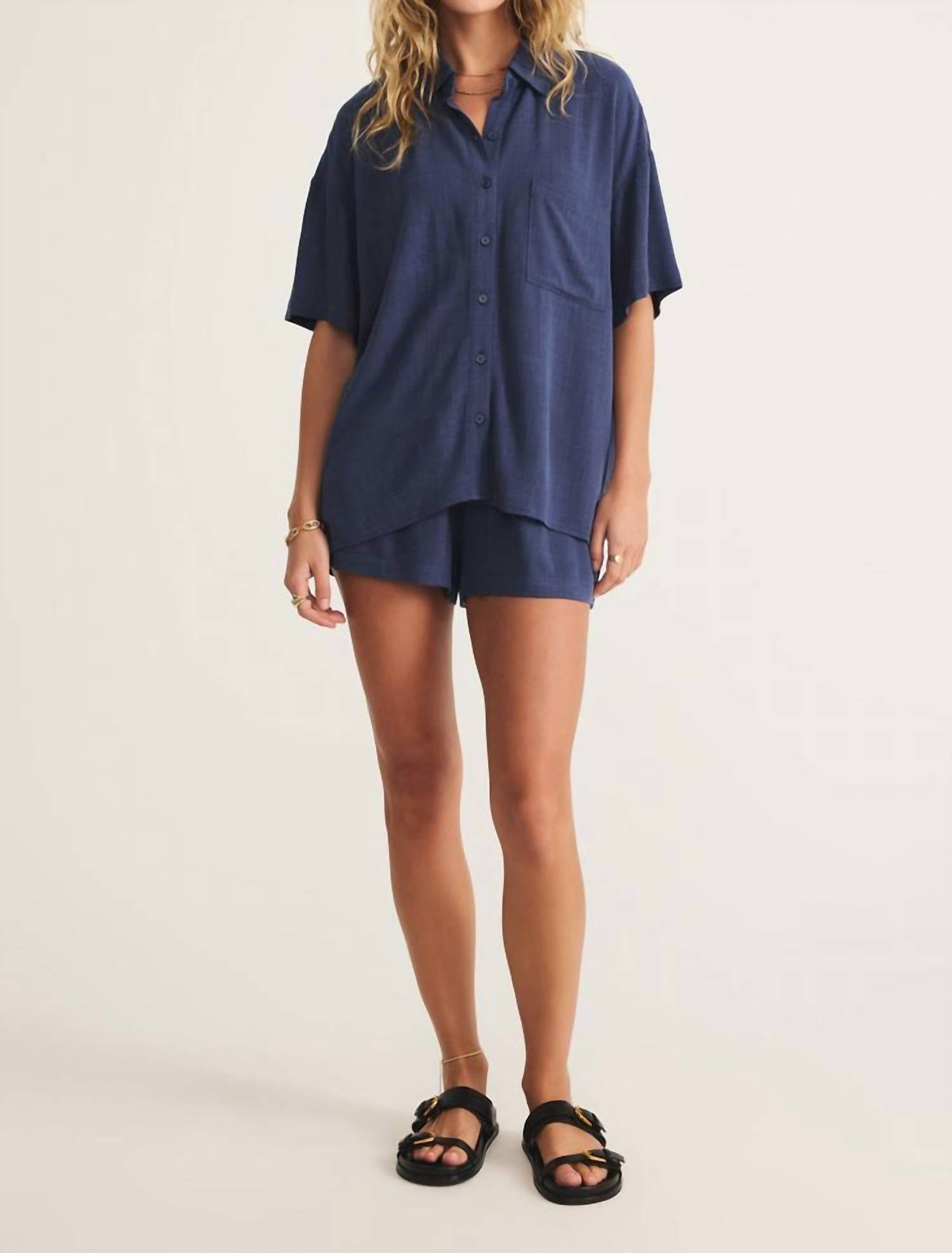 Tuck your favorite tee into these high-waist shorts for a more casual-cool feel. Introducing the Scout Linen High Rise Shorts by Z Supply, your perfect athleisure companion for a chic beach day. These Yacht Blue shorts feature a high-rise, elastic waistband for a comfortable pull-on fit, crafted from a midweight blend of 86% Rayon and 14% Linen. With a heavy soft wash finish and regular fit, they're designed for effortless style during the summer season. Care: Hand wash and lay flat to dry.