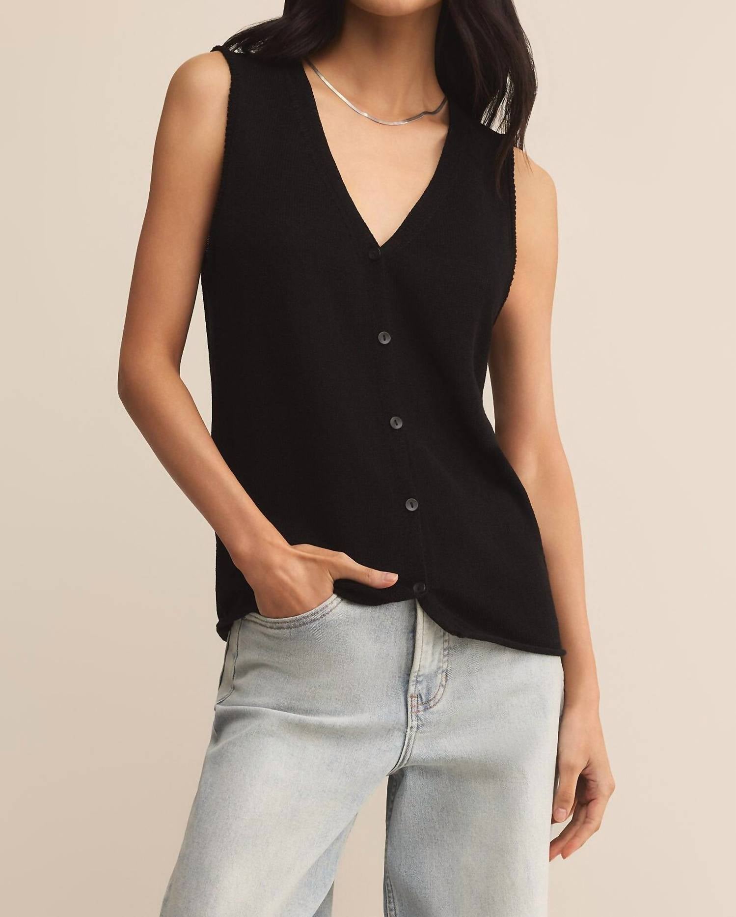 A vest so versatile you can mix and match it with almost any outfit and it will feel brand new every time. Experience the chic elegance of the Wanderlust Sweater Vest by Z Supply, crafted for those who appreciate understated style. This sleeveless vest in the Grinning color features a V-neckline and a button closure, perfect for a regular fit. Composition: 52% Cotton, 48% Viscose, offering a lightweight feel with a heavy soft wash for a luxurious touch. Care: Machine wash for effortless maintenance, ensuring this solid, monochrome piece remains a staple in your spring and Easter wardrobe.