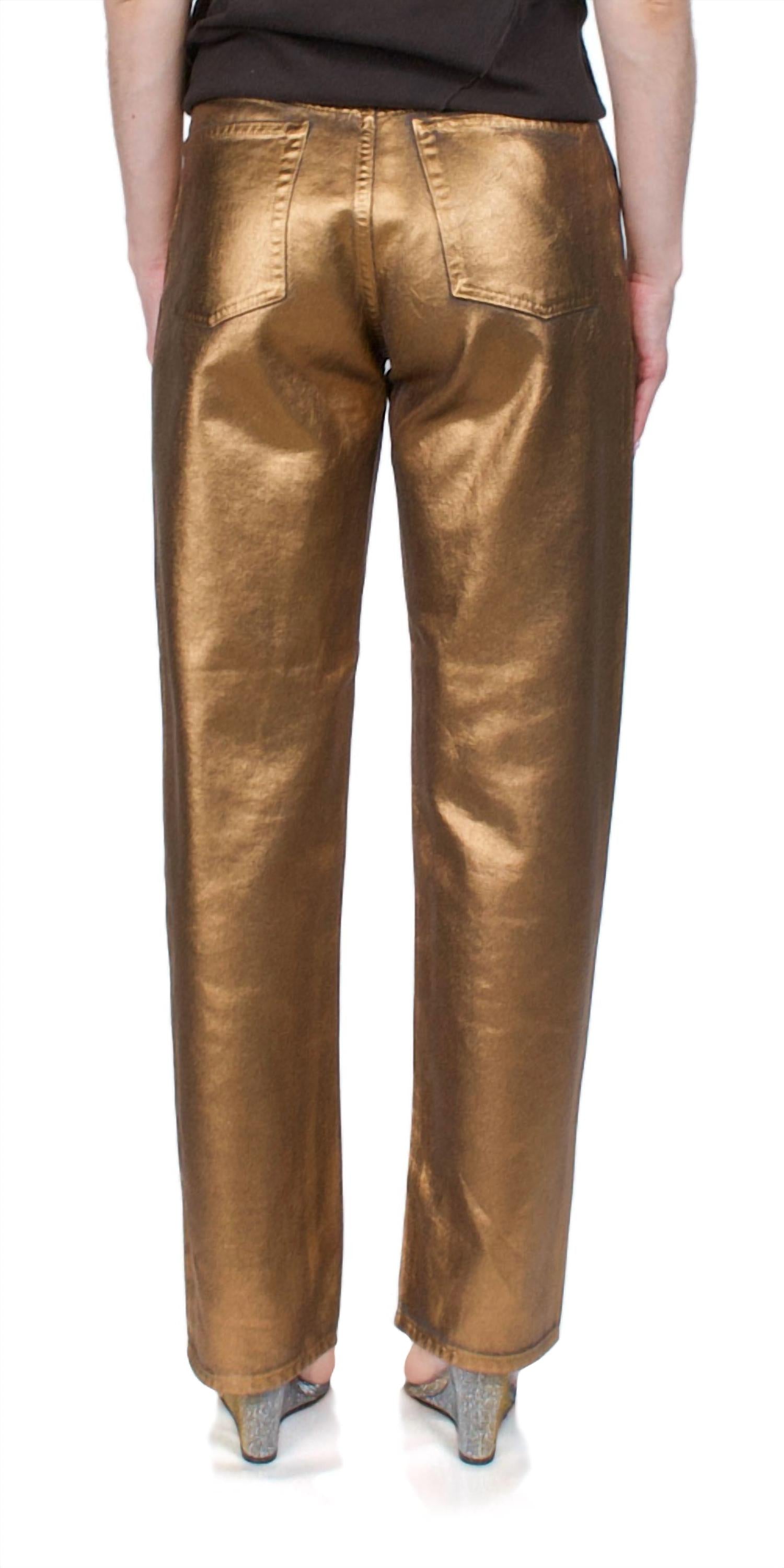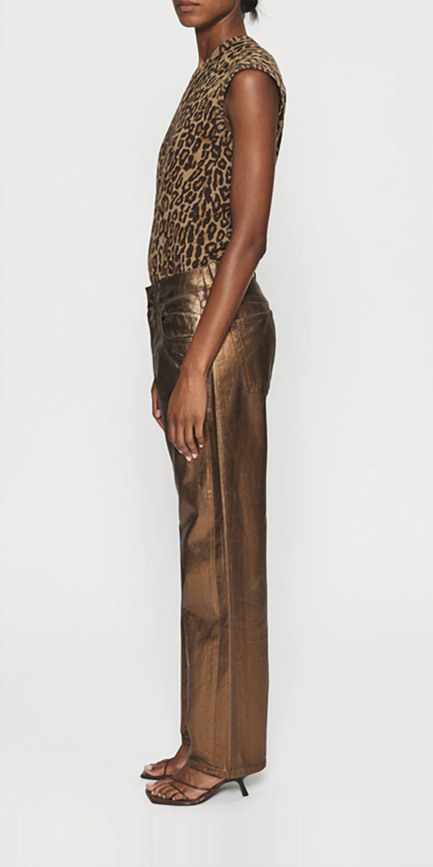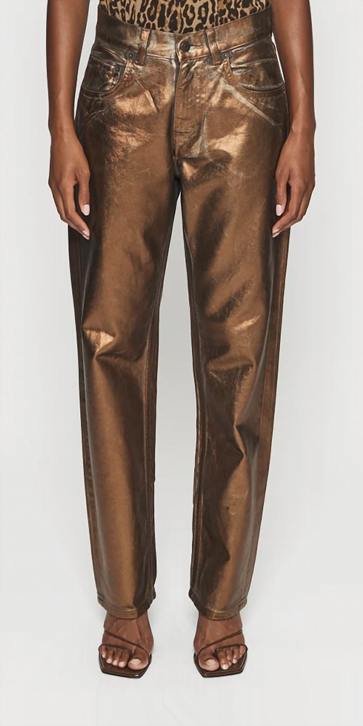 These must-have jeans are fit to perfection. Introducing the Women's Coated Pitched Baggy Jean by 6397, a spring essential featuring a relaxed fit with a loose thigh and a stylish tapered leg. Crafted in Italy from 100% cotton, this piece showcases a unique oxidized copper color finish. With a mid-rise fit and convenient zipper and button closure, these jeans fit true to size, embracing the Y2K trend with their enduring style. Perfect for those seeking a comfortable and versatile addition to their wardrobe.