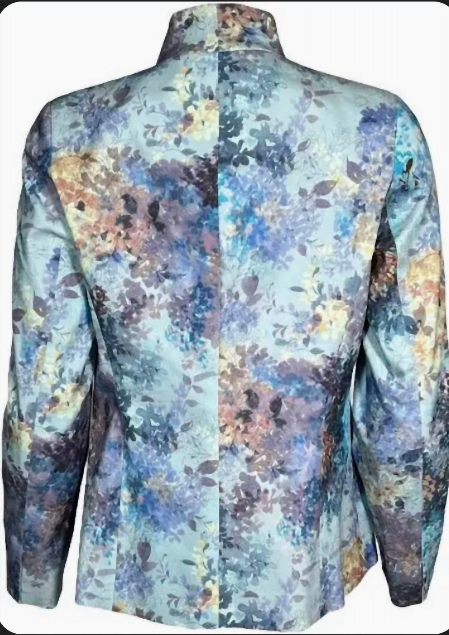 A blazer so versatile you can wear it to the office or pair it with jeans for a more casual look. The Women's Monet Shaped Jacket by Estelle and Finn in Blue Multi adds a splash of floral elegance to your wardrobe. Featuring a collar and an easy open front, this long sleeve blazer offers a stylish, unstructured look without the need for pockets. Perfect for layering, it elevates any outfit for a polished yet relaxed style. Enjoy the effortless charm of this piece, ideal for both casual and sophisticated settings.