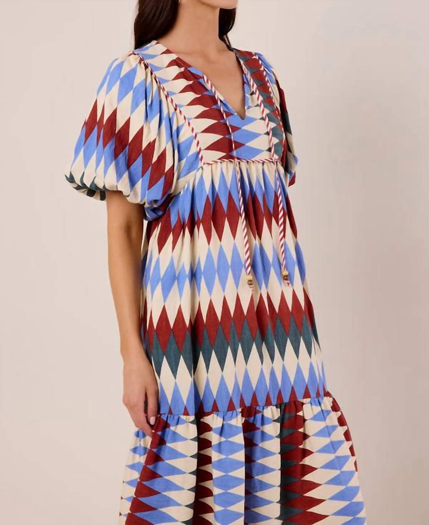 Just add slides or mules and you are good to go. Introducing the GiGiO Diamond Striped Midi Dress, a Boho Chic creation perfect for summer occasions like Thanksgiving. This beautifully crafted dress features short sleeves and a flattering V-neckline with self-tie details, adorned with an allover diamond print and contrast trim for added elegance. Made from soft rayon, this piece sports a flounce hemline and side slip pockets for practicality, while its shift silhouette ensures comfort. Easy to wear with a pull-on closure, this midi-length dress is machine washable and should be line dried.