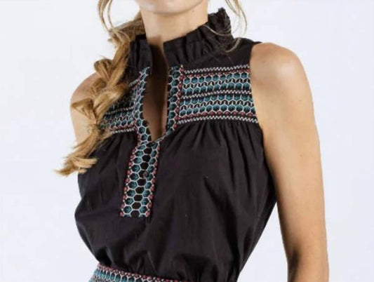 Embroidered black sleeve top. This amazing piece has so many details from the tiny button place to the ruffle around the neck. There is also embroidery across the top and around the bottom.
