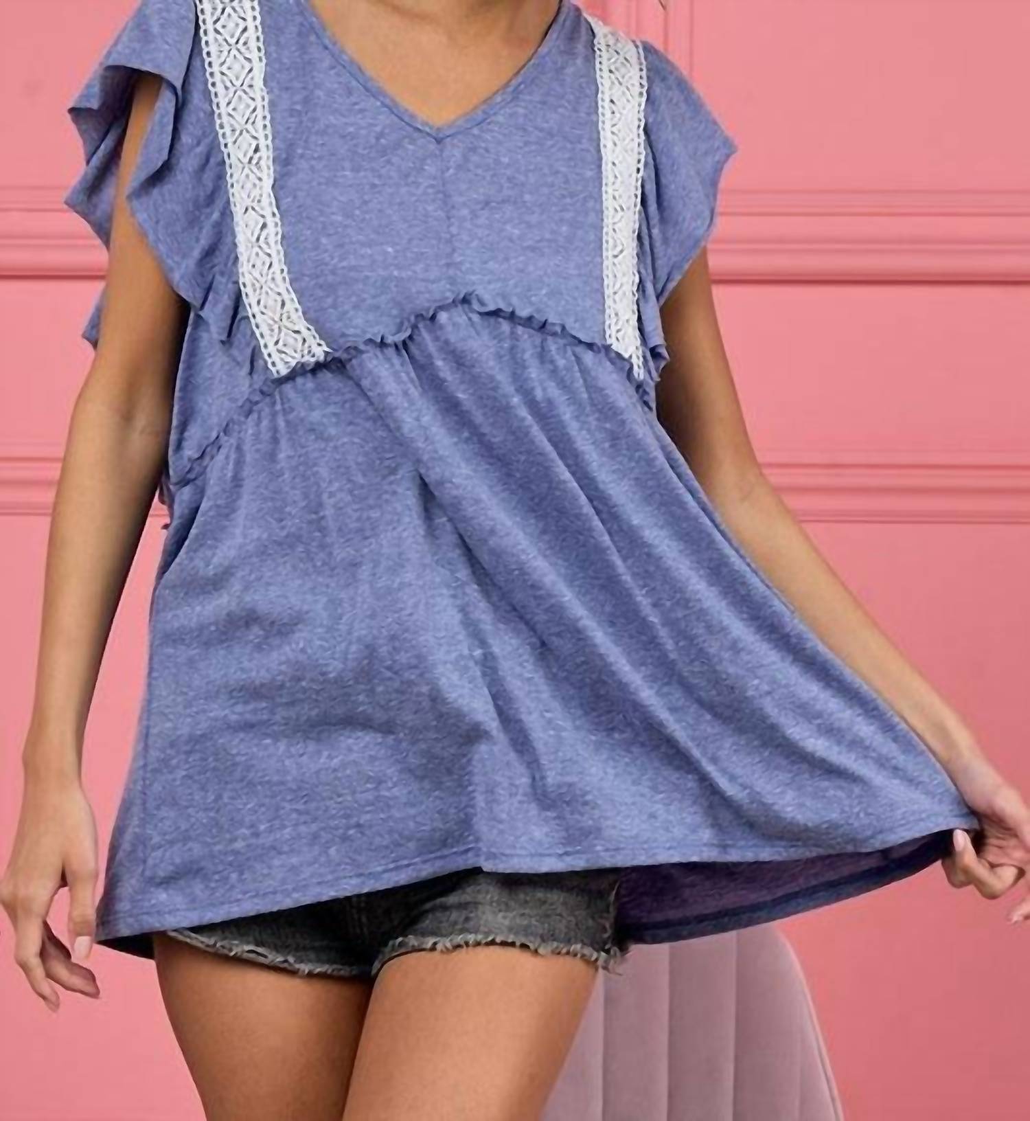 A versatile blouse that works from desk to dinner! Discover the Crochet Lace Detailed Butterfly Tiered Top by BiBi, designed to bring a touch of whimsy to your wardrobe in elegant navy. Crafted from a cotton blend with a composition of 50% polyester, 38% cotton, and 12% rayon, this cap sleeve top features a V-neckline and solid pattern, perfect for minimalist trends. Its pull-on closure and intricate crochet lace detailing on layered tiers ensure a stylish yet comfortable fit. Made for summer and vacation occasions, it is best cared for by hand washing cold and line drying.