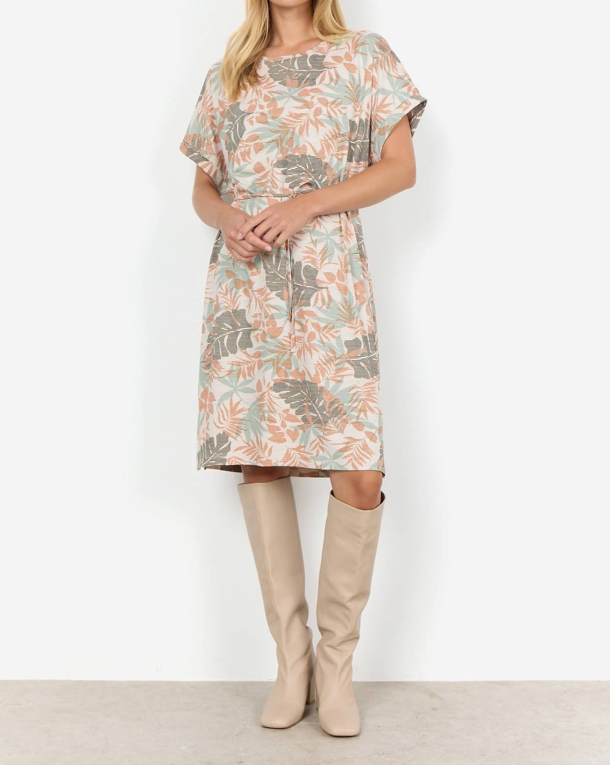 Casual, comfortable and cute! The dress that you'll be reaching for all season long. Step into effortless style with the Galina Dress by Soya Concept, crafted from 100% Viscose for a luxurious feel. This vibrant Papaya dress promises to keep you comfortable with its elegant design featuring a round neckline and short sleeves. Perfect for casual occasions, the dress showcases a chic belt detail for added sophistication. Care for it easily with a hand wash in cold water and line dry for lasting wear.