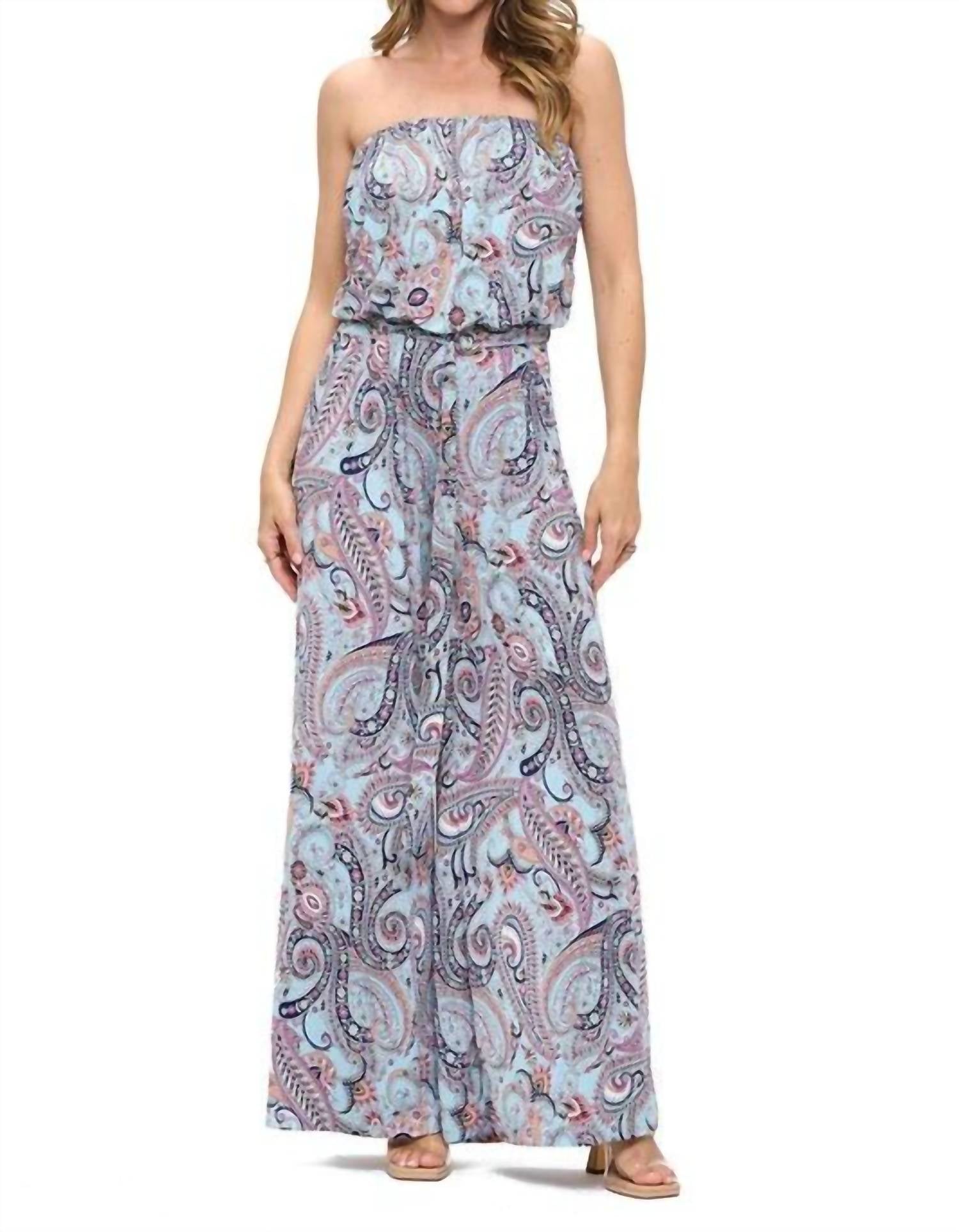 Discover easy elegance with the Ella Strapless Jumpsuit by Ariella in vibrant multi-paisley, perfect for spring adventures. Designed with a relaxed fit and wide-leg style, this boho chic piece ensures comfort and freedom of movement. Featuring a convenient pull-on closure, it’s an ideal pick for a beach day or any casual outing.