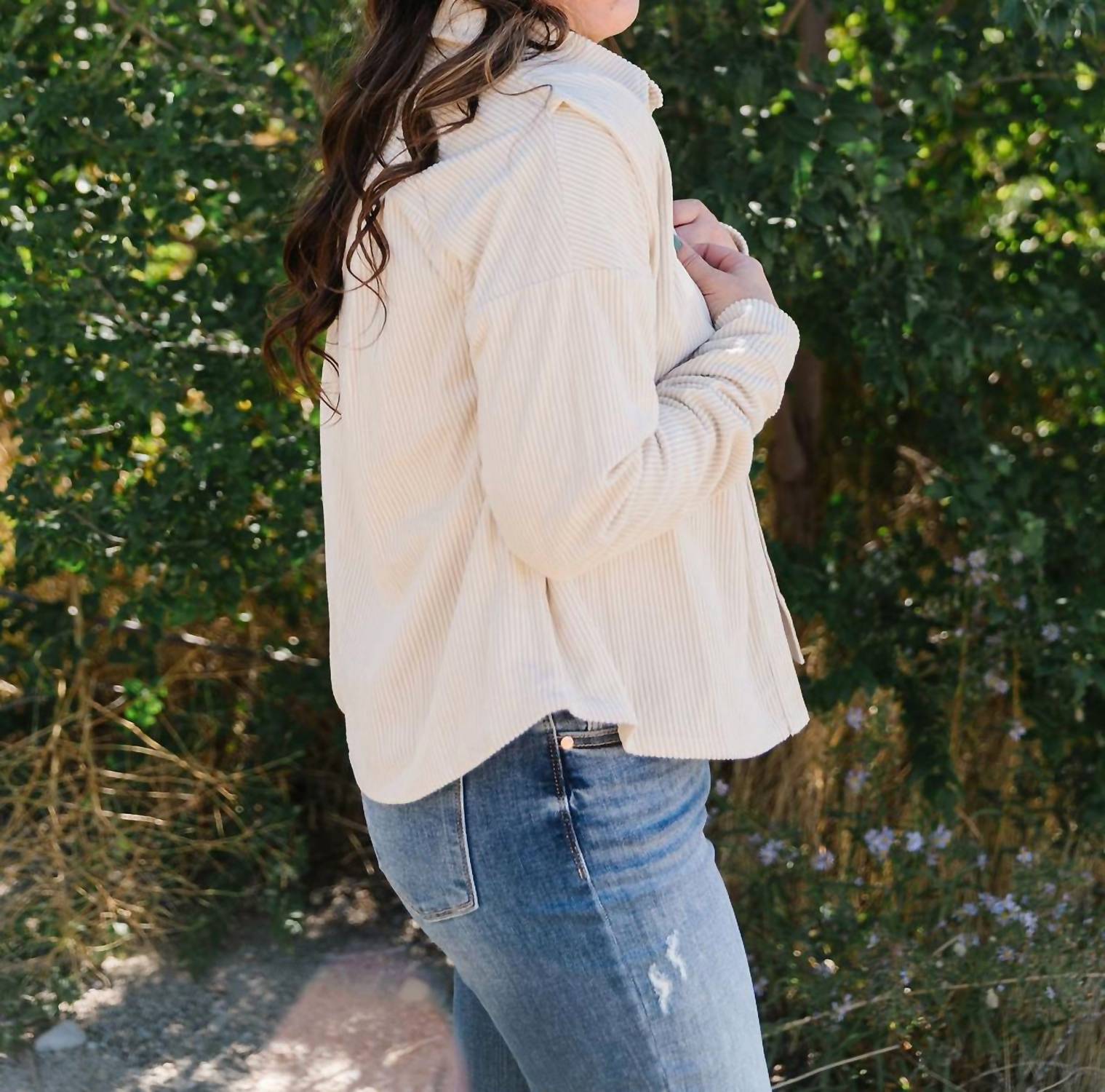Cute, casual, and comfortable. This jacket is a must have. Introducing the Jane Button-up Shacket by Heyson, a perfect blend of style and comfort for chilly fall days. Made from 100% polyester, this textured cream jacket features long sleeves and a classic collar. With its button closure, this minimalist piece is ideal for layering and adding a chic touch to any vacation or Thanksgiving outfit. Care: Hand wash cold, do not bleach, line dry, and low iron if needed.