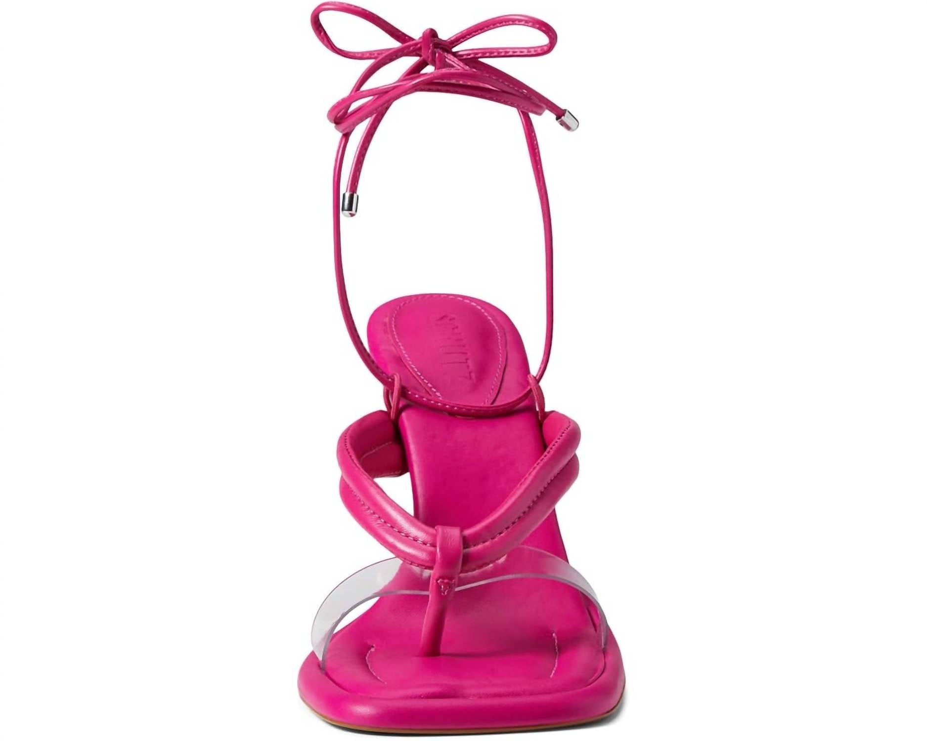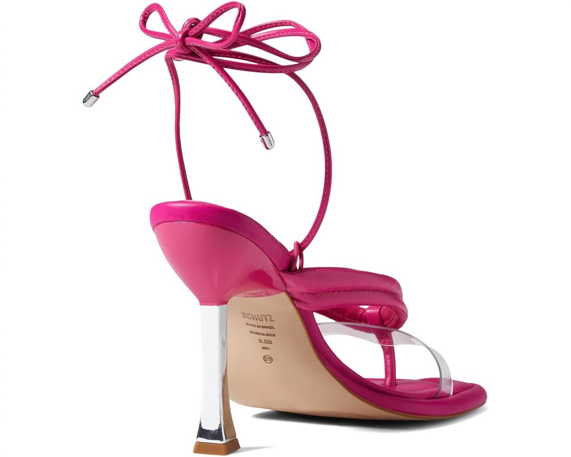 Step into elegance with the Meghan Ankle Tie Sandals by SCHUTZ, a perfect blend of style and comfort. These sandals feature a synthetic upper with a chic translucent vamp strap and breathable synthetic lining. The open square toe design complements the sky-high 4.5" heel, secured with a wraparound ankle strap and tie closure for a personalized fit. Crafted with a synthetic outsole, these fabulous sandals in hot pink and transparent are made in Brazil, promising to elevate your look day or night.