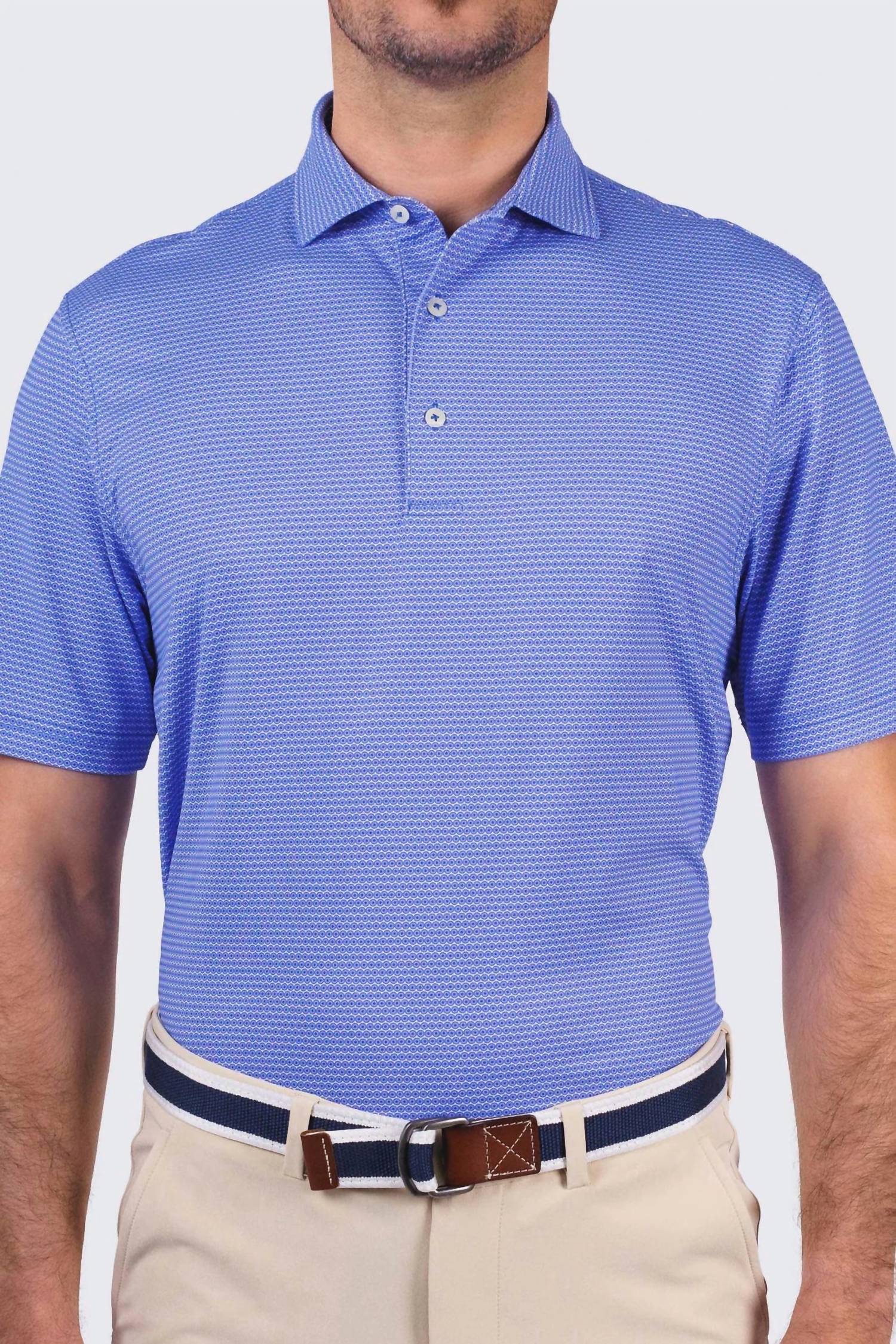 Elevate your summer wardrobe with the Turtleson Lennon Short Sleeve Polo Shirt, perfect for casual dinner parties. This marine-colored polo features a striking sunburst pattern and a classic button closure under a collared neckline. It is crafted from 91% Polyester and 9% Spandex, offering four-way stretch and moisture-wicking properties to keep you comfortable in warm weather. Available in sizes from Small to 3X-Large, with neck specifications ranging from 14-15 inches to 19-20 inches.