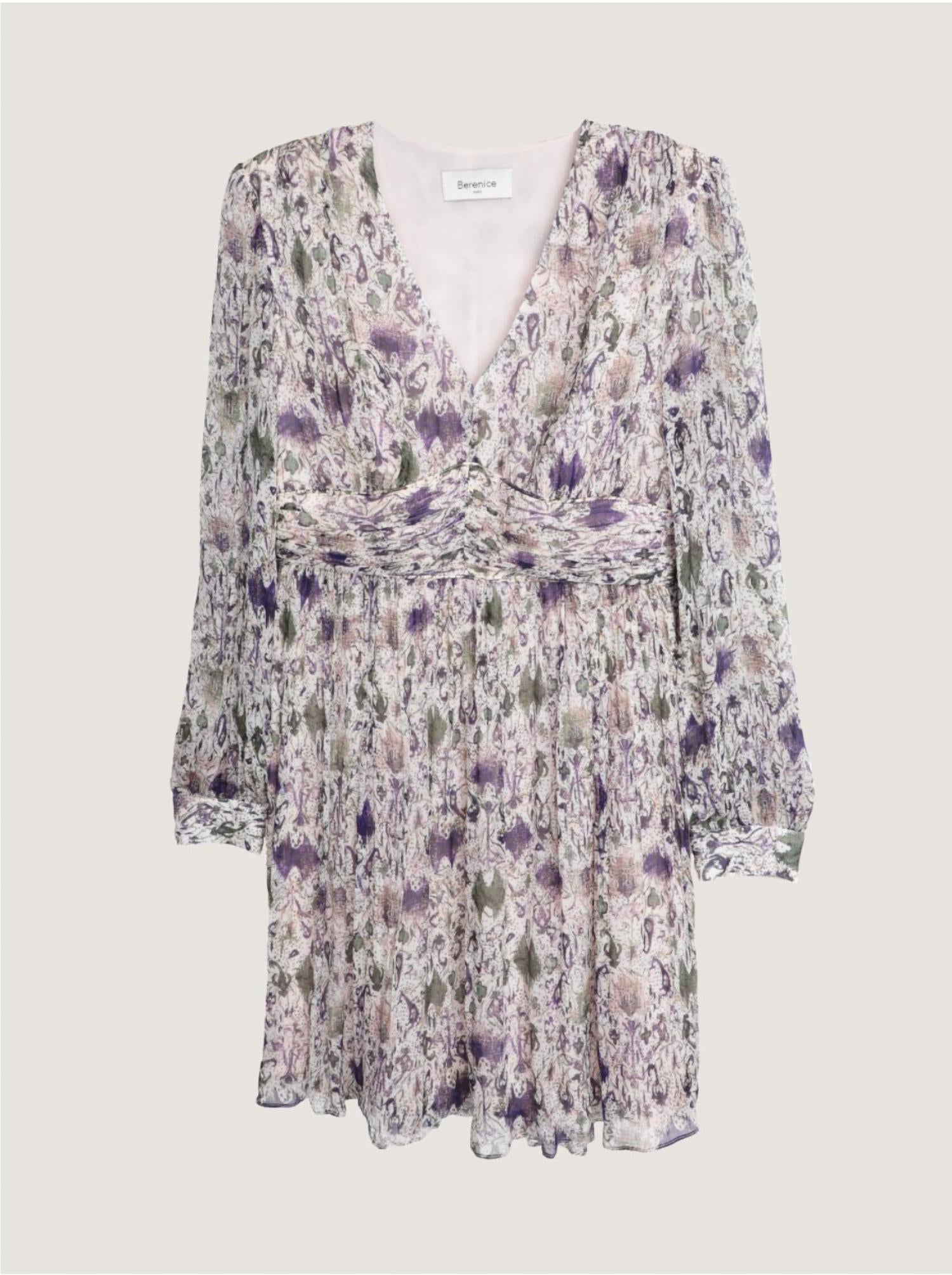 Casual, comfortable and cute! The dress that you'll be reaching for all season long. Introducing the Ralia Dress by Berenice, an elegant choice for any engagement occasion. This patterned shirt dress for women features long sleeves and a sophisticated V-neckline. Designed in a captivating purple hue, it offers a casual yet refined appeal. Origin and care instructions are not provided.