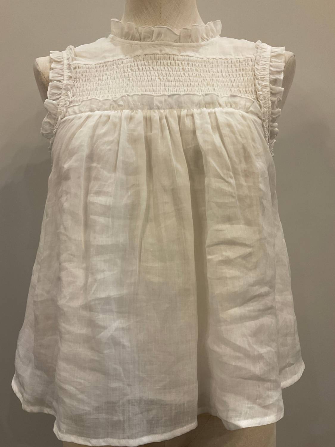 Pair this with your favorite jeans and slides for your next girls night out. Discover the ELAN Women's Bella Top, a sleeveless beauty in textured white perfect for any occasion. Featuring a playful mockneck design with delicate ruffles, this piece offers a flattering fit enhanced by its elastic chest. Closure: Button closure. Ideal for spring and designed in a boho chic trend, it’s a versatile staple every wardrobe needs.