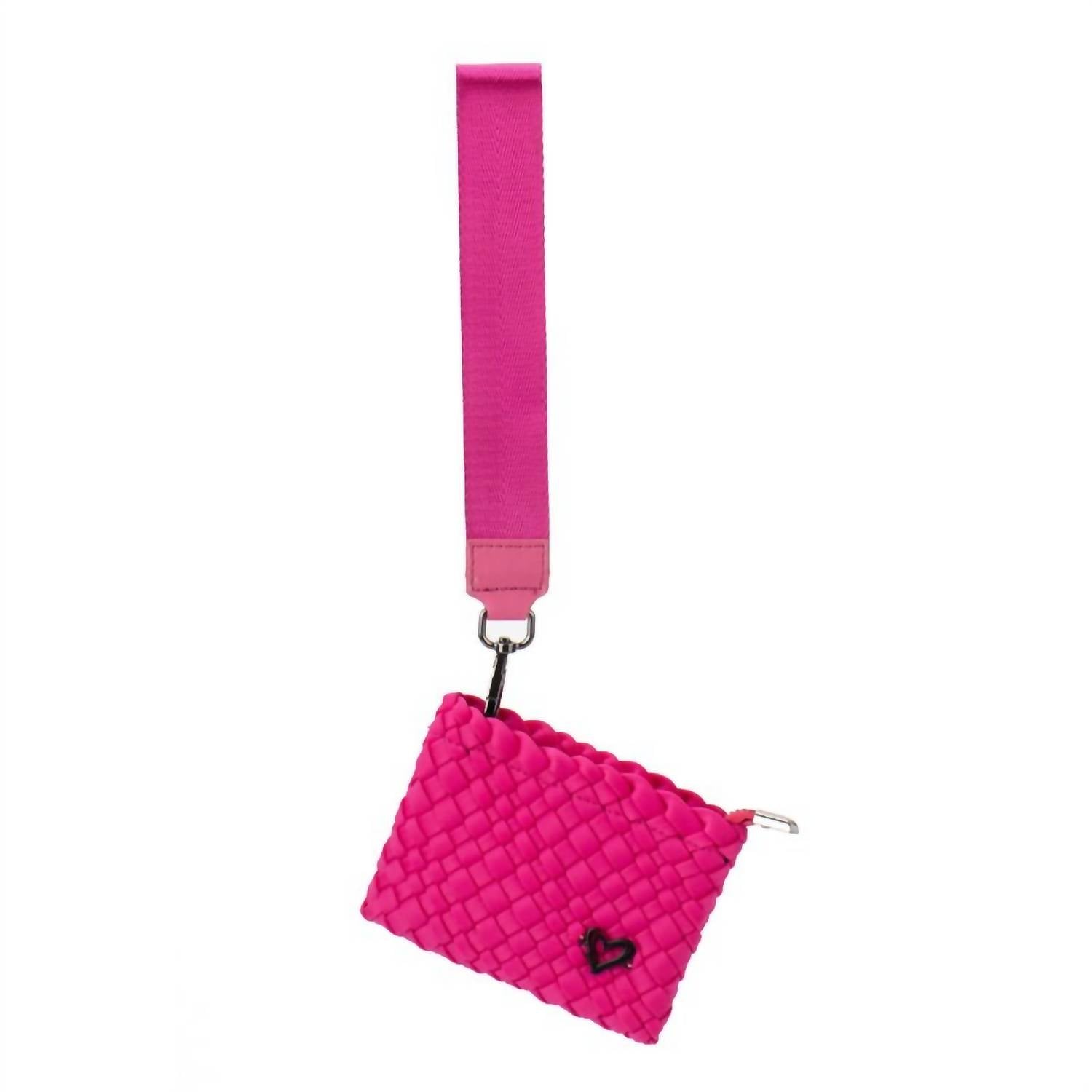 The perfect clutch for an evening out on the town. Introducing the Women's Windsor Card Case/Wristlet Bag by preneLOVE, a stylish and practical accessory in vibrant magenta. This handwoven wristlet comes with a sturdy nylon strap for easy carrying. Its compact dimensions of 12cm x 8.5cm (4.7" x 3.3") make it an ideal companion for holding your essentials. Elevate your everyday style with this chic, functional piece.