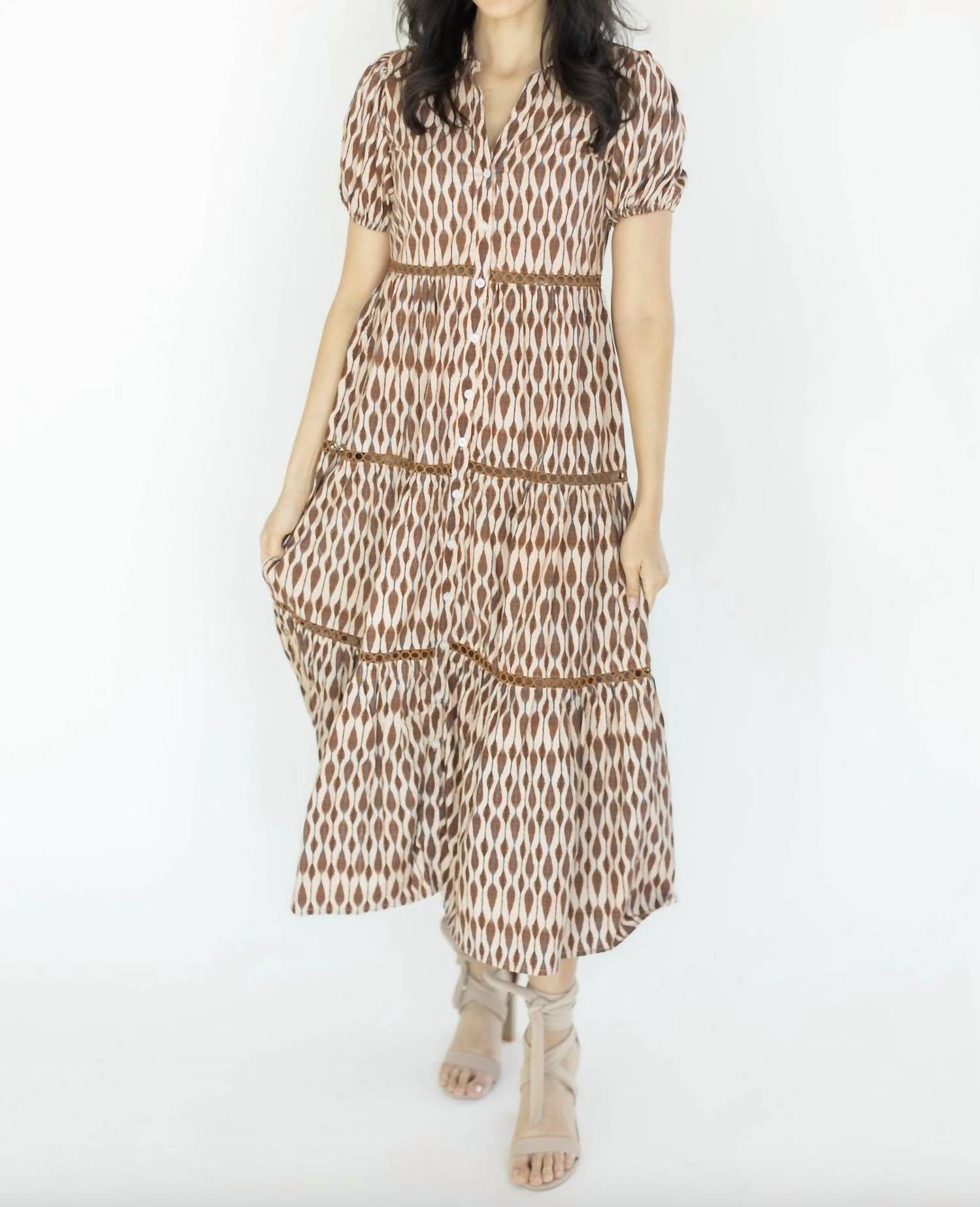 A midi dress so versatile, your options for wearing it are endless. Introducing the Tatum Dress by Victoria Dunn in the captivating color Hypnotic, perfect for any stylish occasion. This A-line midi dress features short sleeves and a flattering V-neck, offering both elegance and comfort. Crafted from quality cotton, this patterned piece comes with functional pockets and a convenient pull-on closure. Care: Machine wash for easy maintenance.