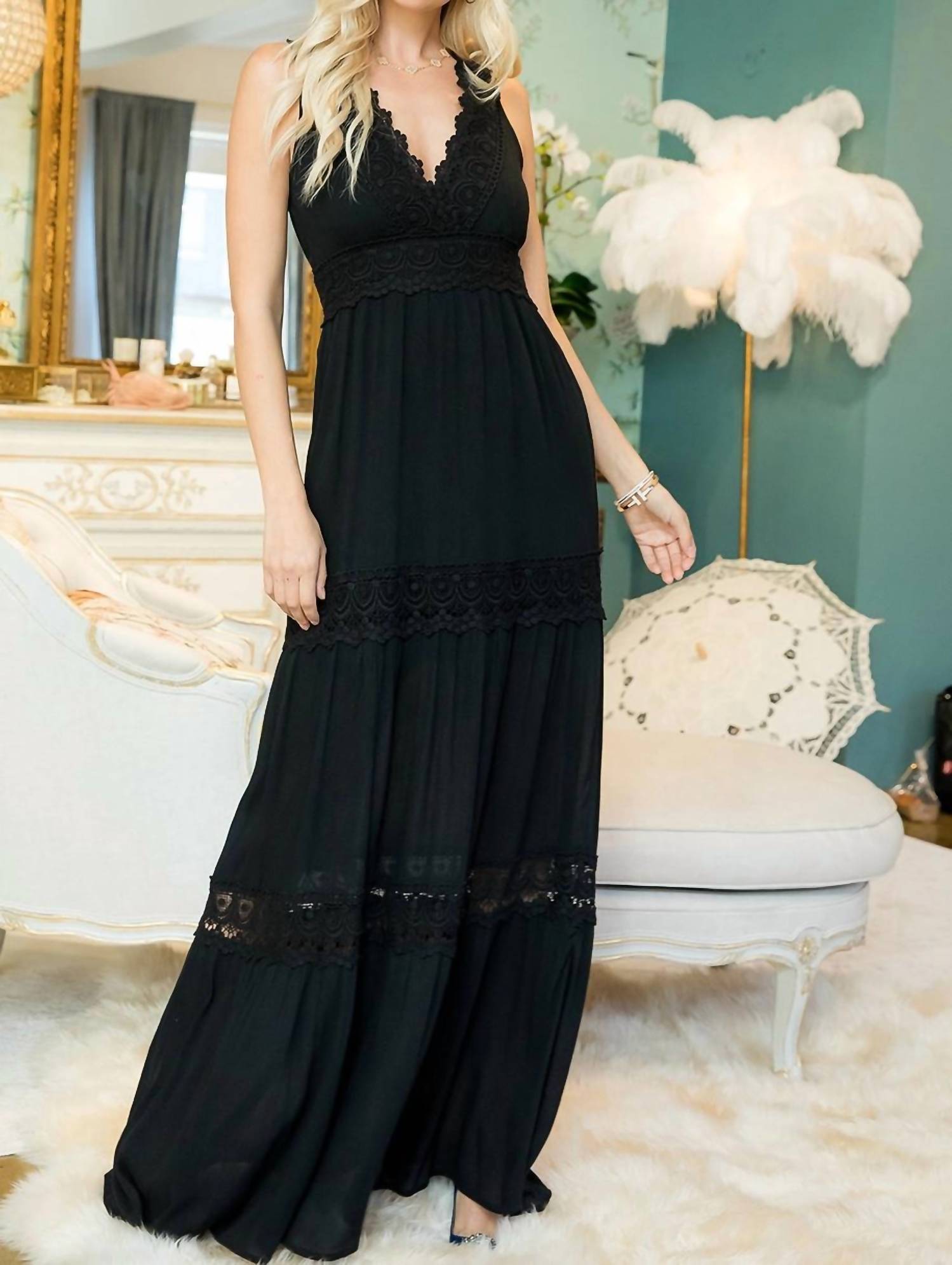 Sweet Lovely By Jen - Crochet Lace Maxi Dress