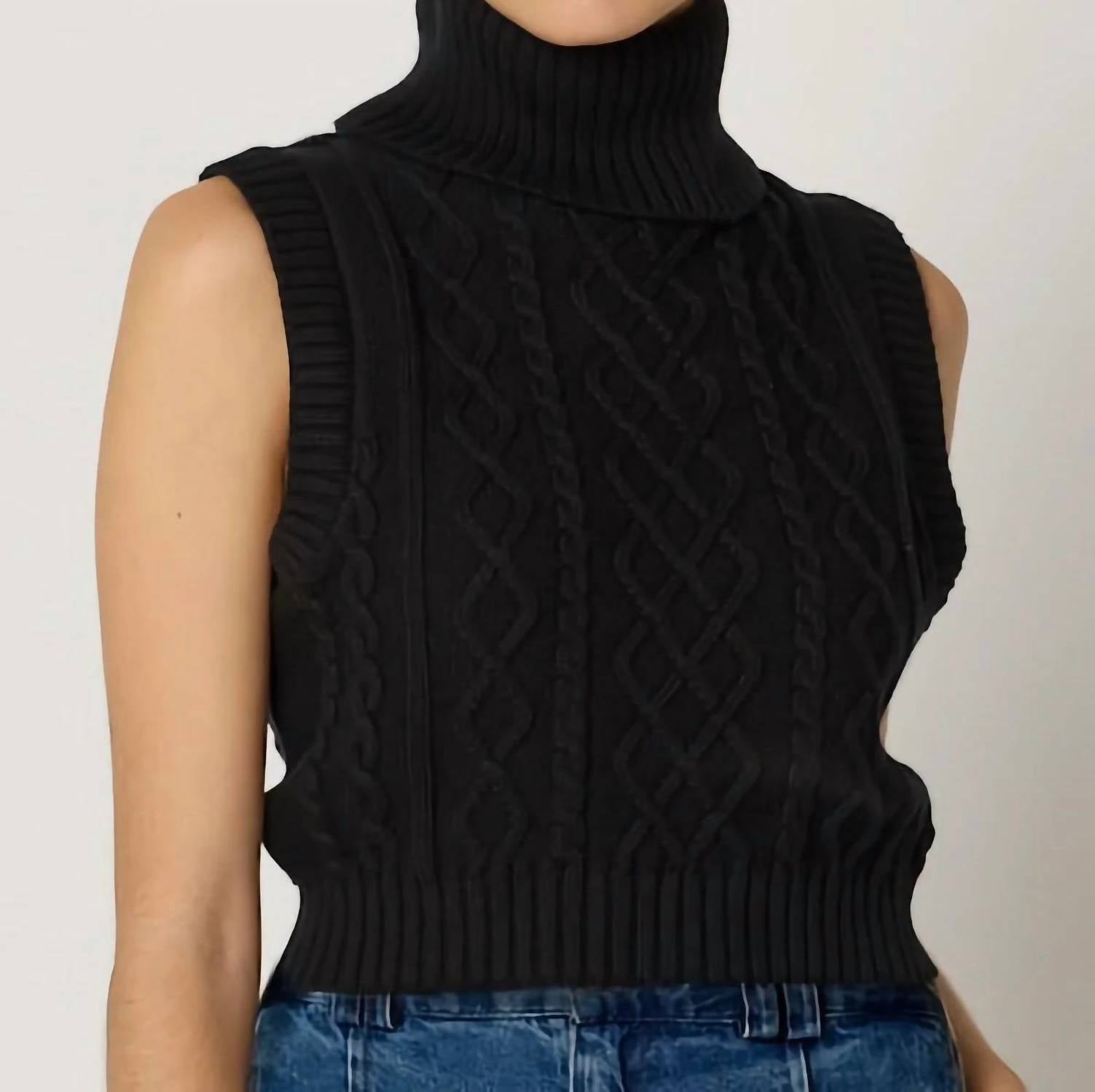 Fit to perfection and effortlessly chic. Indulge in luxury with the Cleobella Aria Sleeveless Turtleneck Sweater, a sophisticated addition to your wardrobe. Crafted from a sumptuous wool blend, this black solid sweater is both versatile and elegant. Made in India, it features a chic turtleneck and a convenient pull-on closure. Keep it looking its best by hand washing and laying flat to dry.