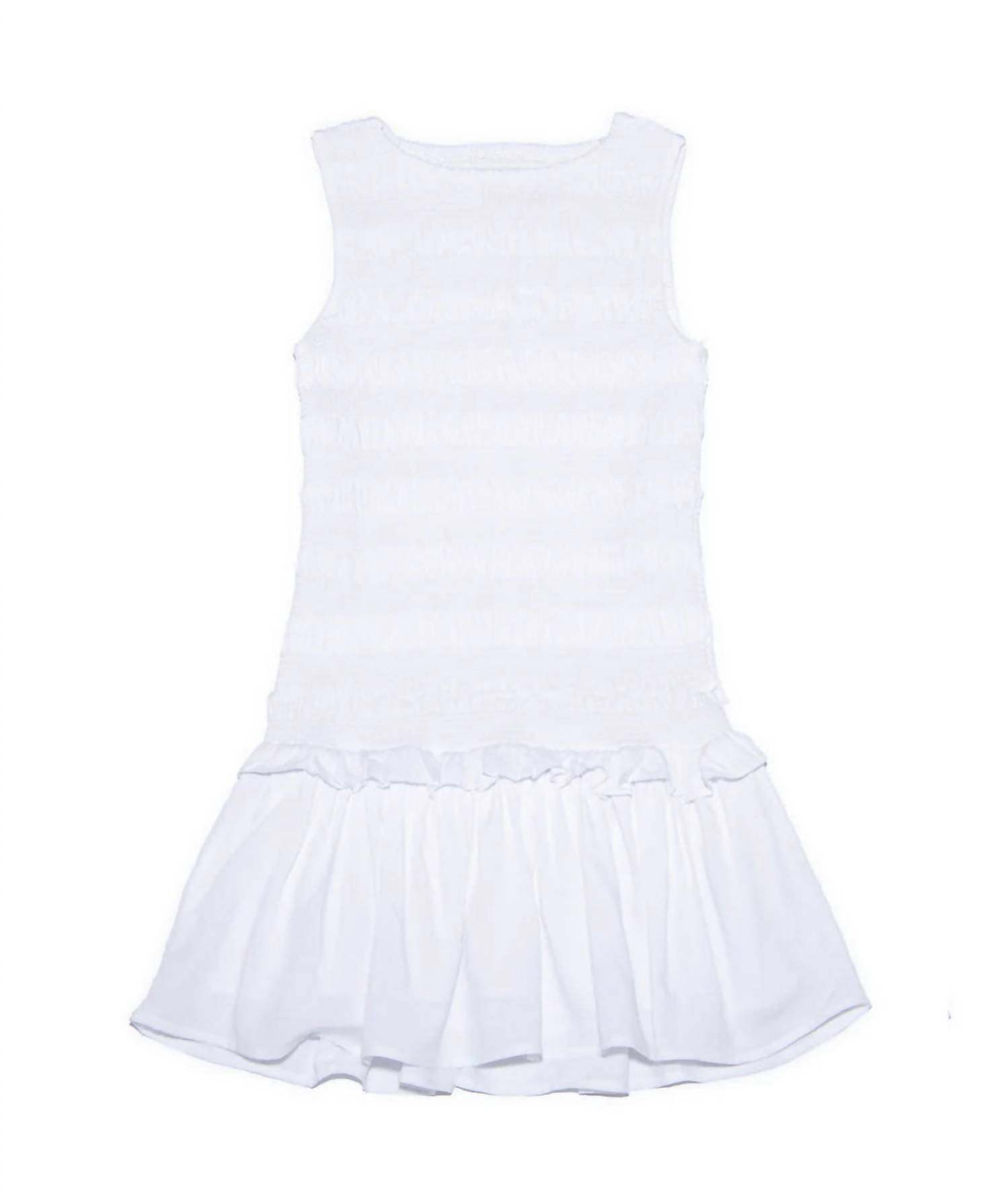 The Girl's Tara Smocked Ruffle Tank Dress by Katie J NYC is an elegant and chic piece, perfect for sunny days and special occasions. This white, solid-patterned dress features a smocked bodice and playful ruffle bottom, embodying a minimalist style suitable for spring outings or birthday celebrations. Made from 100% Viscose for both the main and lining, this dress combines comfort with sophistication. Care: Dry clean only. Available in Junior Sizing (Adult): XS, SM, MD, LG.