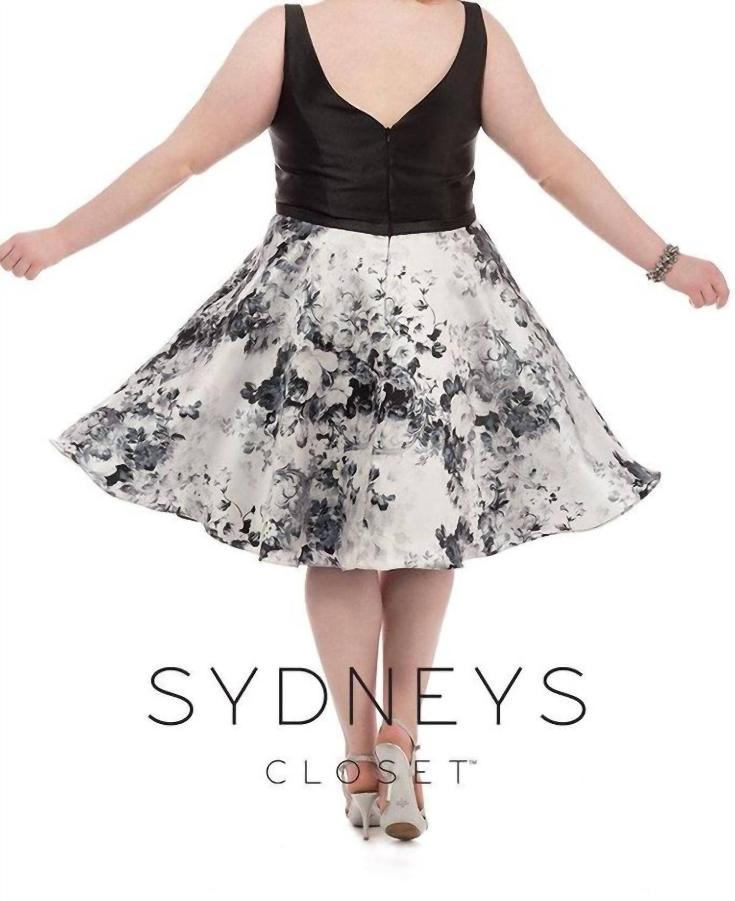 A-Line dress made with mikado satin fabric. Bra-friendly straps! The mikado satin top has a sleeveless, V-neckline with bodice styled with a V-back and a center back zipper. The A-line skirt is designed with floral prints and runs at knee length hem. Details: Mikado Satin, Sleeveless, Floral print, A-line skirt, V-back, Back zipper. Length: Knee Length Neckline: Wide V-neck Waistline