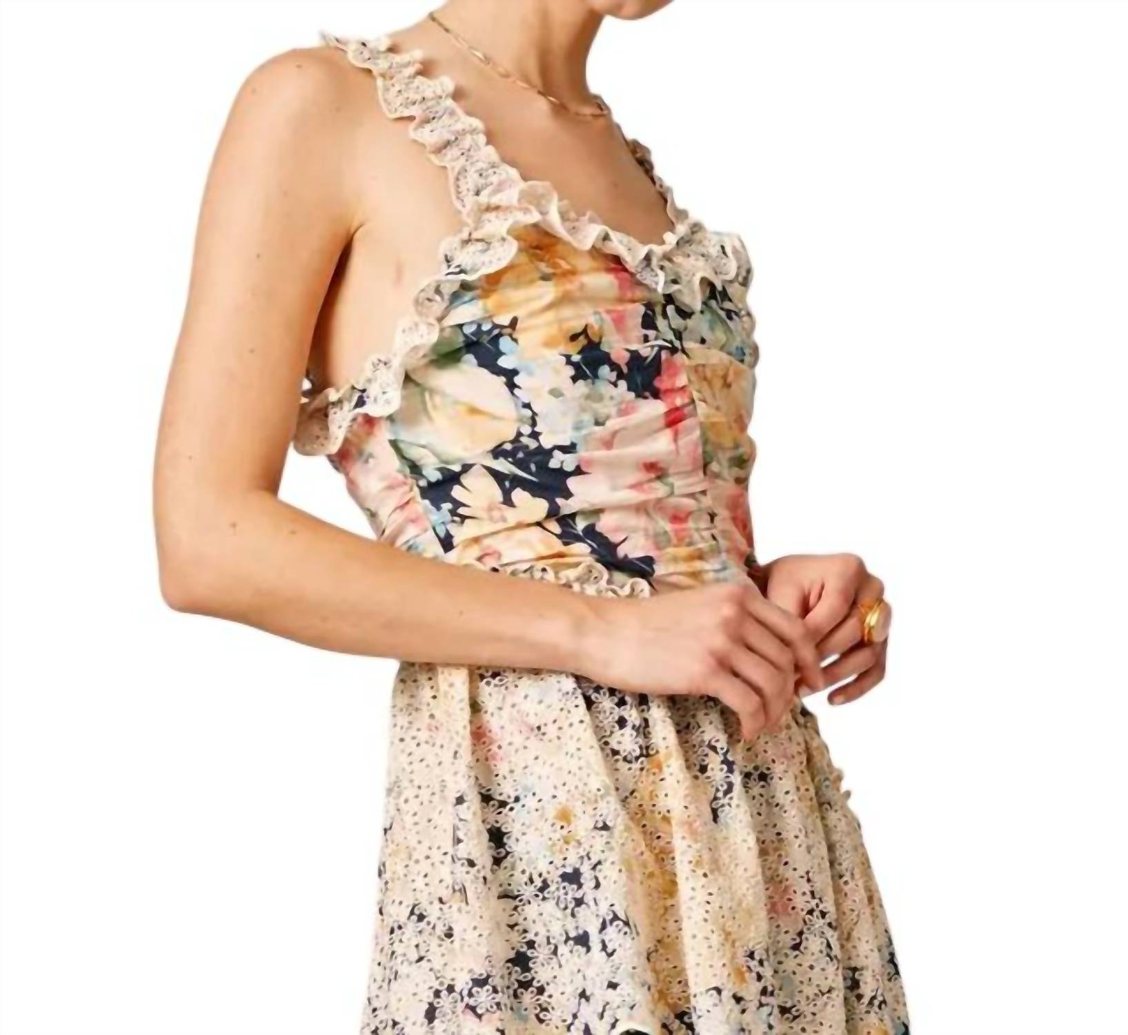 Introducing the Cotton Slub Flounce Dress by byTiMo in a captivating Botanic shade. This sleeveless maxi dress, crafted from FSC certified 50% Cotton and 50% Viscose, offers a charming blend of sustainability and style. The fitted top features intricate rouching, while the voluminous skirt is adorned with luxurious flounces. Closure is secured with a side zipper, and delicate broderie anglaise straps add a touch of elegance. Care for this beautiful piece with a gentle wash at 30 degrees.