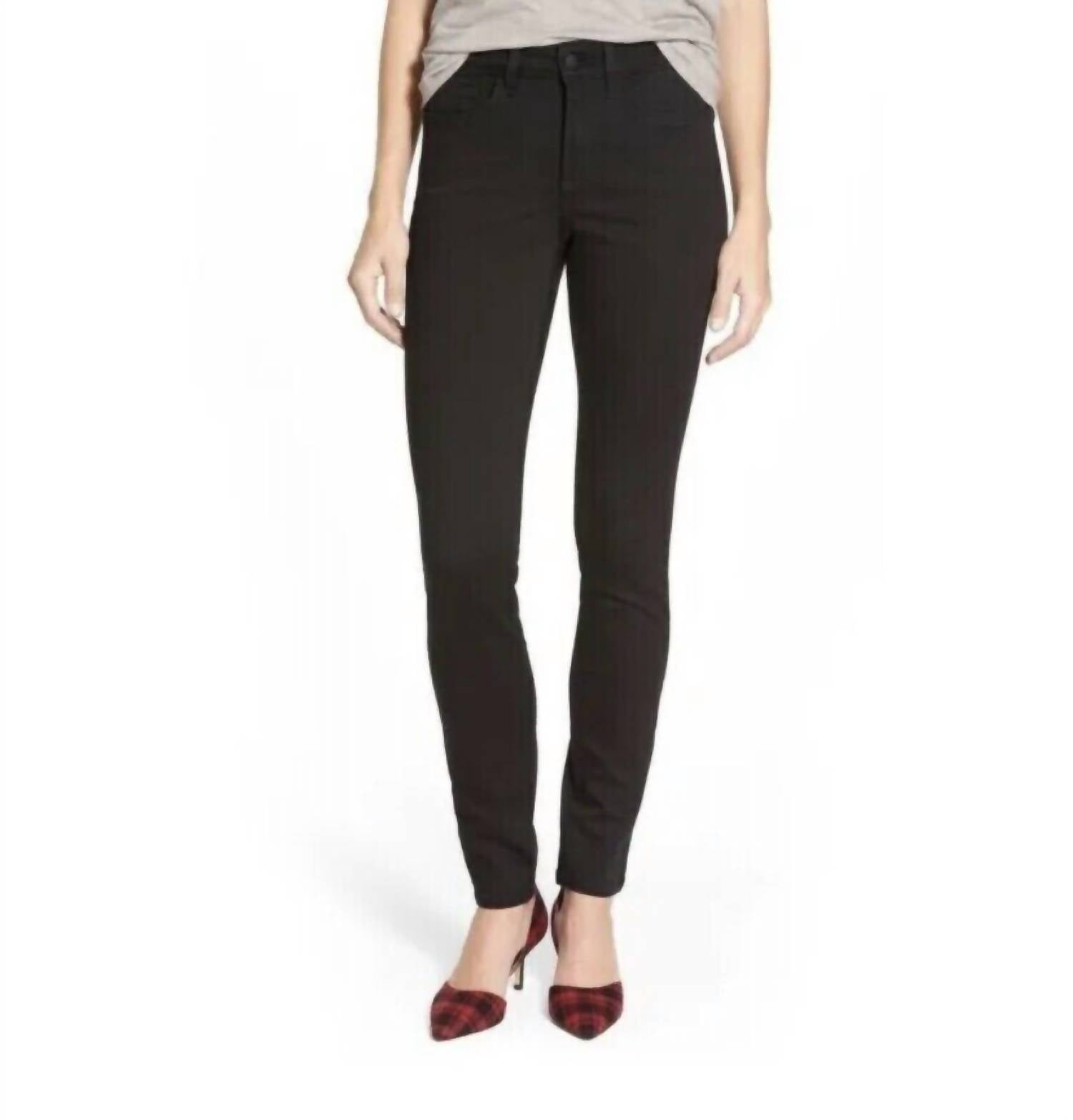 Introducing the Ami Skinny Jeans by NYDJ, crafted to elevate your style with a sleek, contoured fit. These mid-rise jeans feature a dark black wash and NYDJ's exclusive Lift-Tuck technology, offering a flattering silhouette from within. Composition: 72% cotton, 20% lyocell, 5% elastomultiester, 3% elastane. Inseam: 29". Front rise: 9.5". Back rise: 15". Leg opening at the hip: 9.75". Waist: 14.5". Closure: Zip fly with button. Care instructions: Machine wash, line dry.