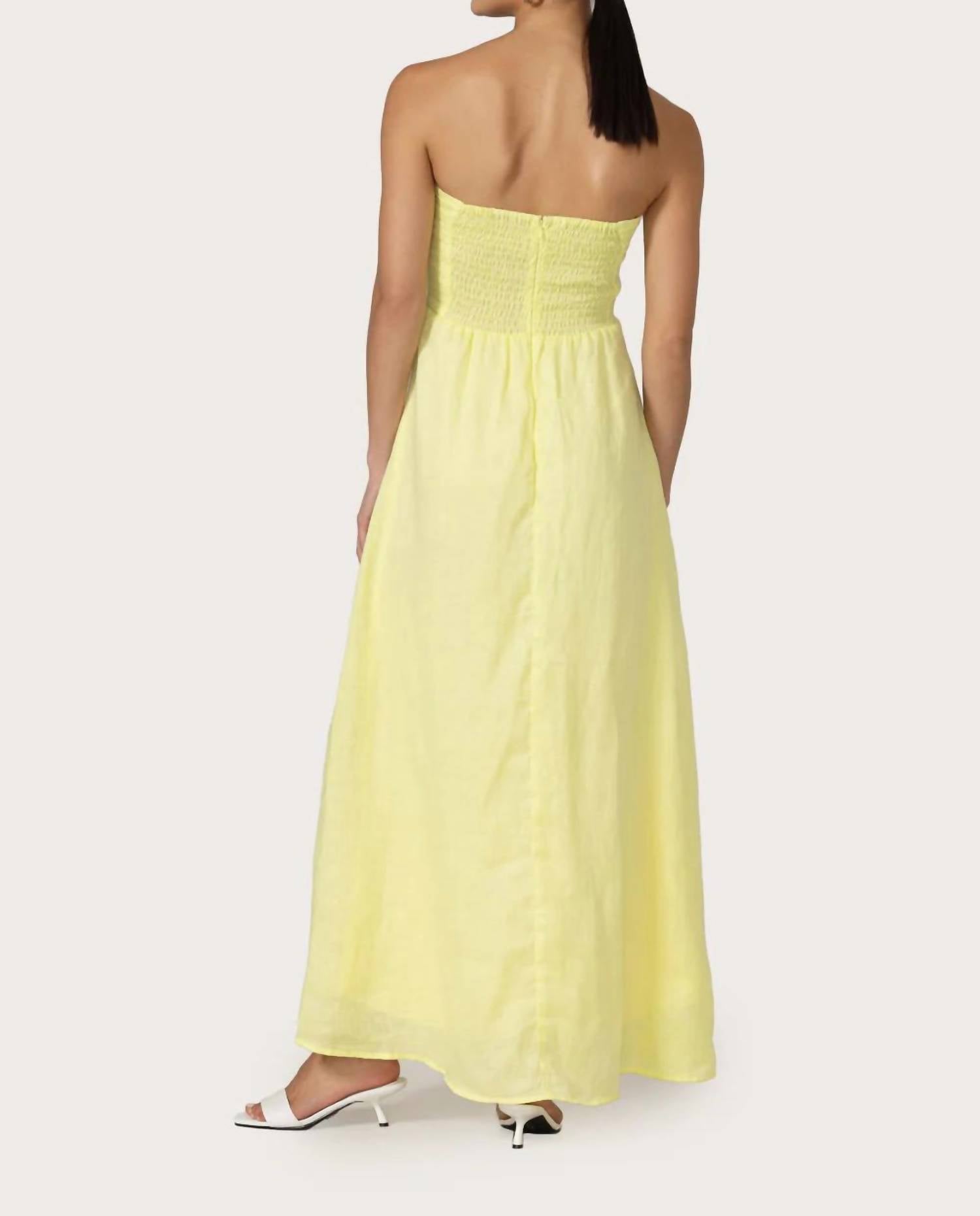 A maxi dress that is just as cute as it is comfortable. Introducing the Melody Linen Maxi Dress by LUSANA, a masterpiece for your European summer wardrobe. This strapless, full-length dress is crafted from 100% European Flax Linen and features a twisted bra detail with an A-line silhouette. The design includes a crossover contrast bodice and an invisible back zipper with shirring elastic for a flawless fit. Care for this enchanting piece is simple with a gentle machine wash or hand wash recommended.