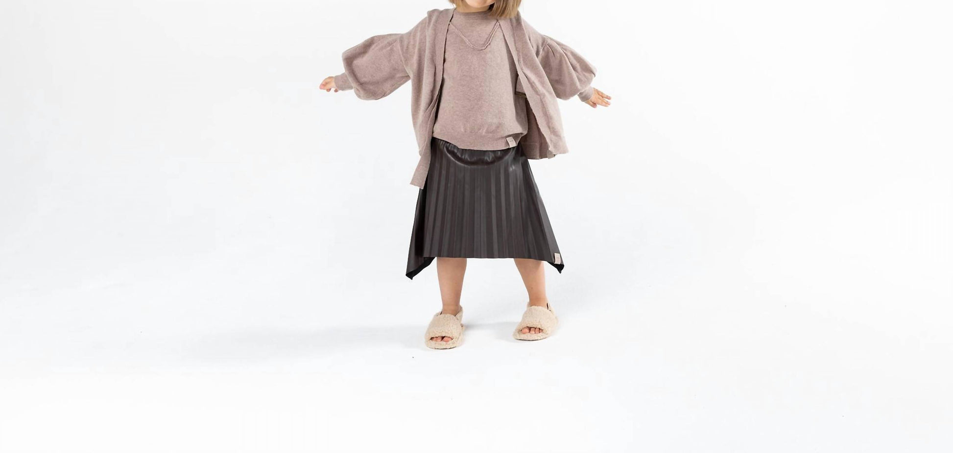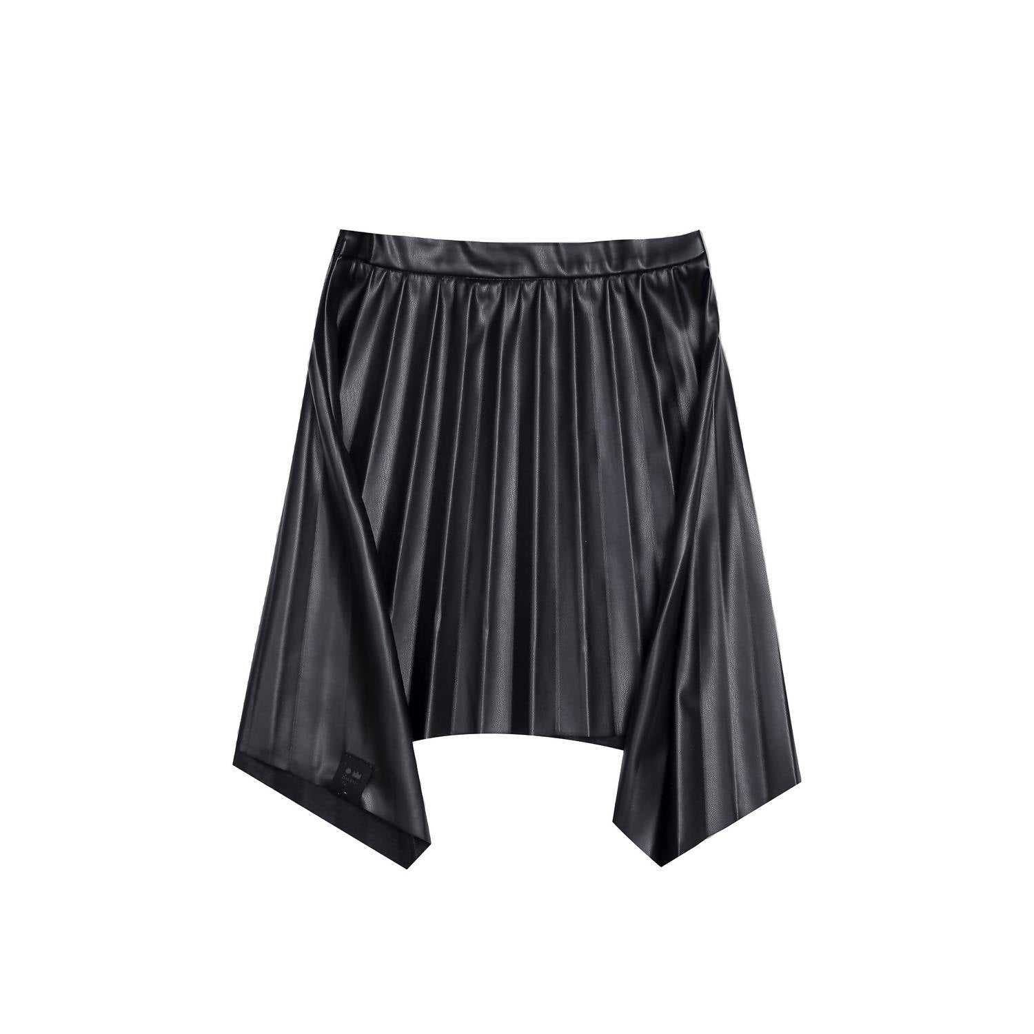 Hidden side zipper. Sueded backing. Knee length. 55% PU, 45% Polyester. Care: warm water regular cycle, no tumble dry, no iron. Please note the faux leather logo label shown in pictures won't appear on actual garments.