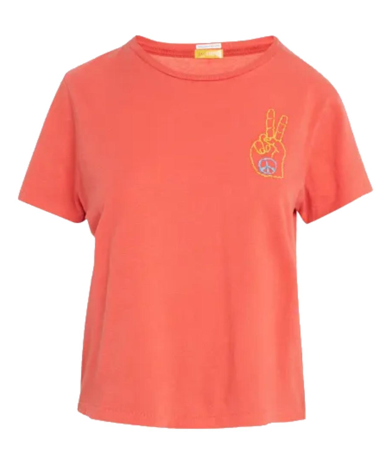 Look no further, you just found your perfect tee! This classic short-sleeve tee features a crew ribbed neckline and an easy pullover style. Made from 100% cotton for a soft, breathable feel, it’s finished with a small peace sign embroidery on the left chest for a subtle touch of personality.