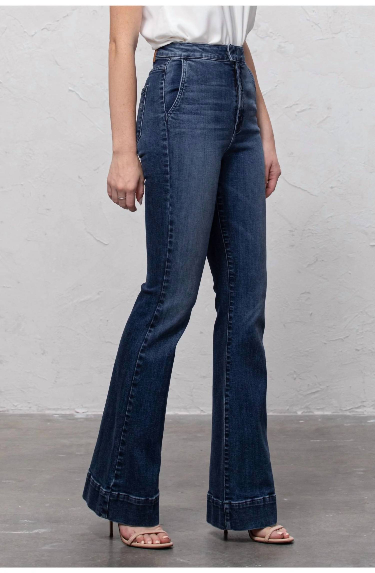 High-waist is here to stay and we especially love this style. Discover the HIDDEN Happi High Rise Flare Jeans, designed in a chic dark wash for a stylish statement. Crafted from a comfortable cotton blend of 93.7% cotton, 4.8% polyester, and 1.5% spandex, these jeans offer a relaxed fit with a high waist and flared legs. The 33” inseam provides an elegant flare, while the button closure ensures a secure fit. Perfect for spring vacations, these solid pattern jeans are equipped with pockets and can be machine washed and tumble dried for easy care.