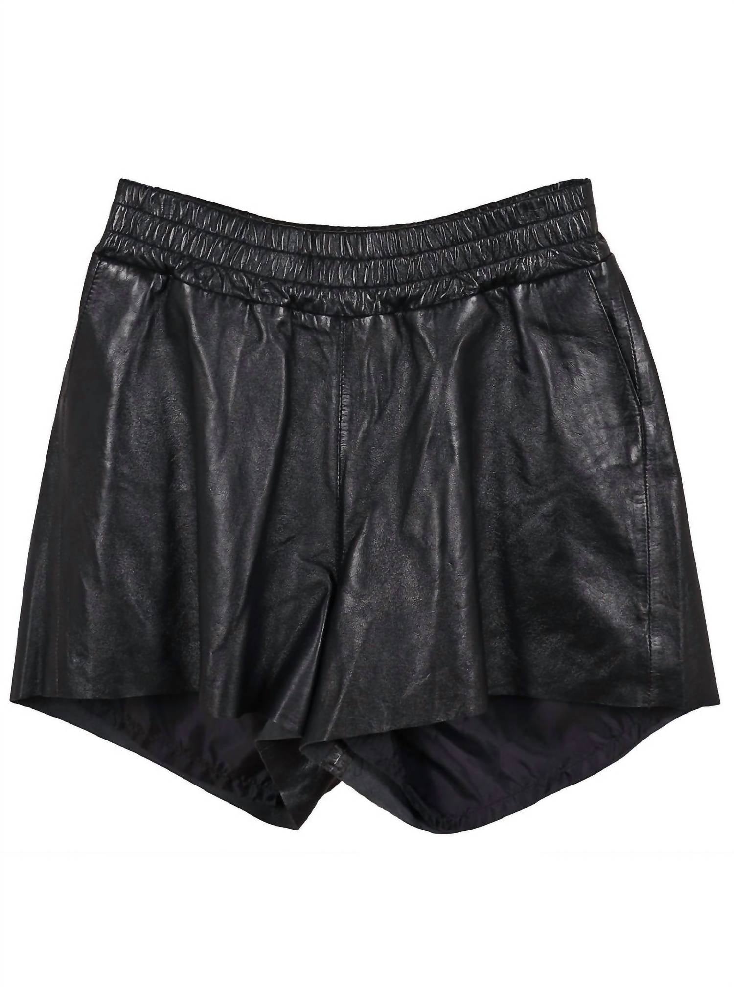 100% Leather. Elastic waist band. Pull on closure. High waisted. Plain color.