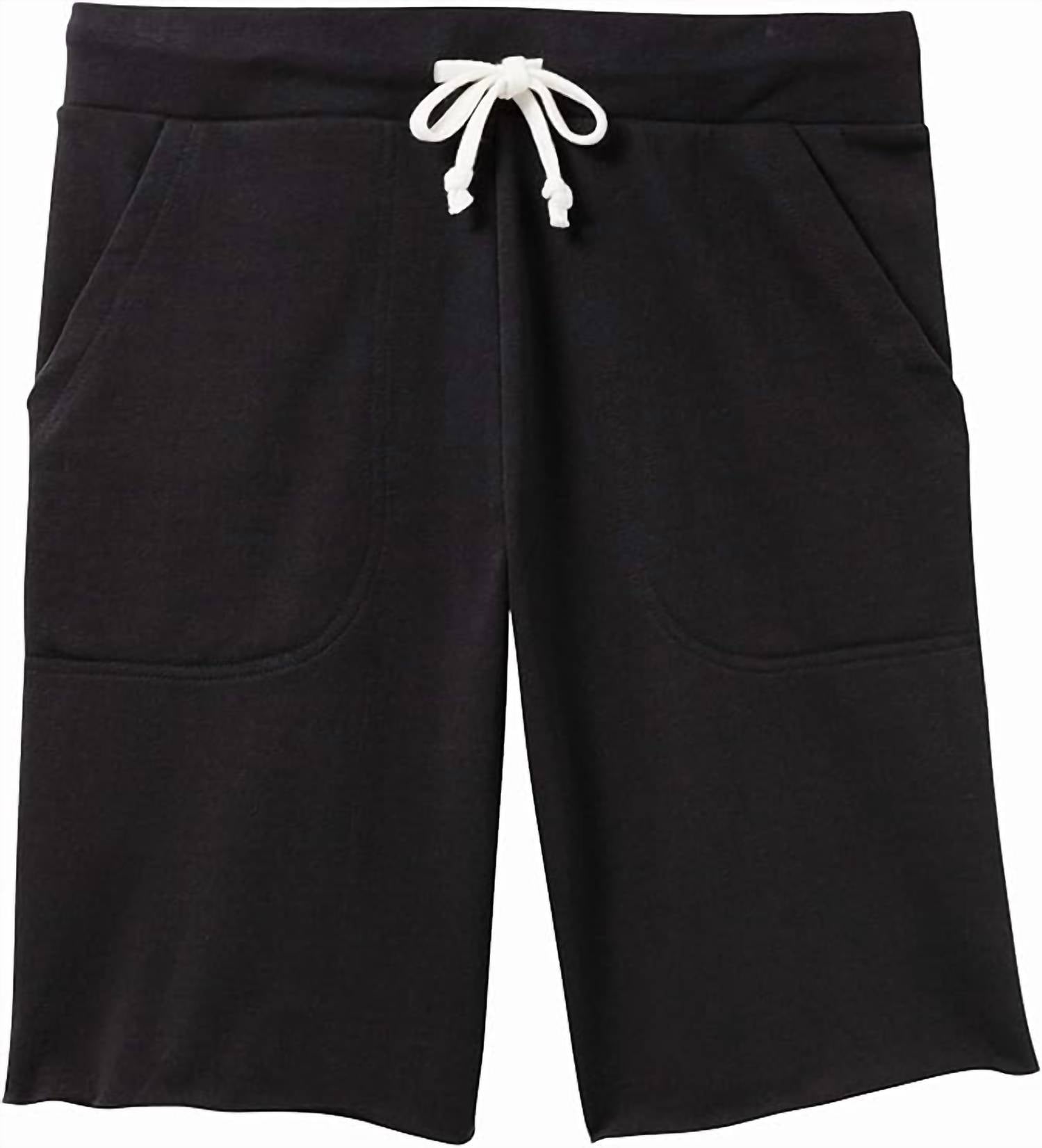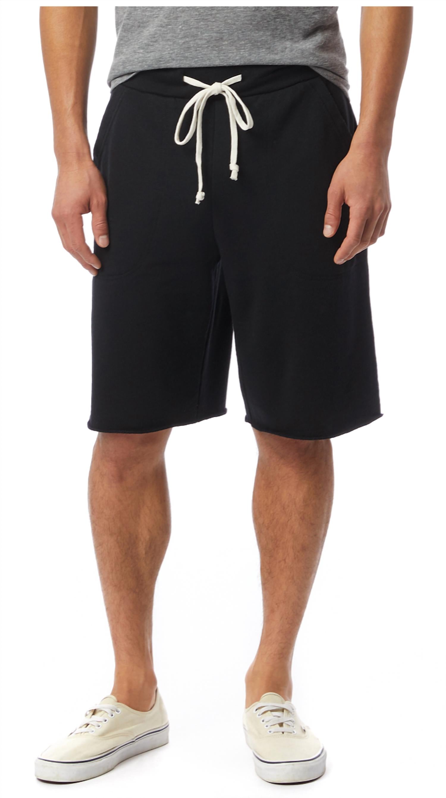 Polyester and cotton jersey fabric. Flat front design. Drawstring waistband. Slant side pockets. Raw-edge hems.