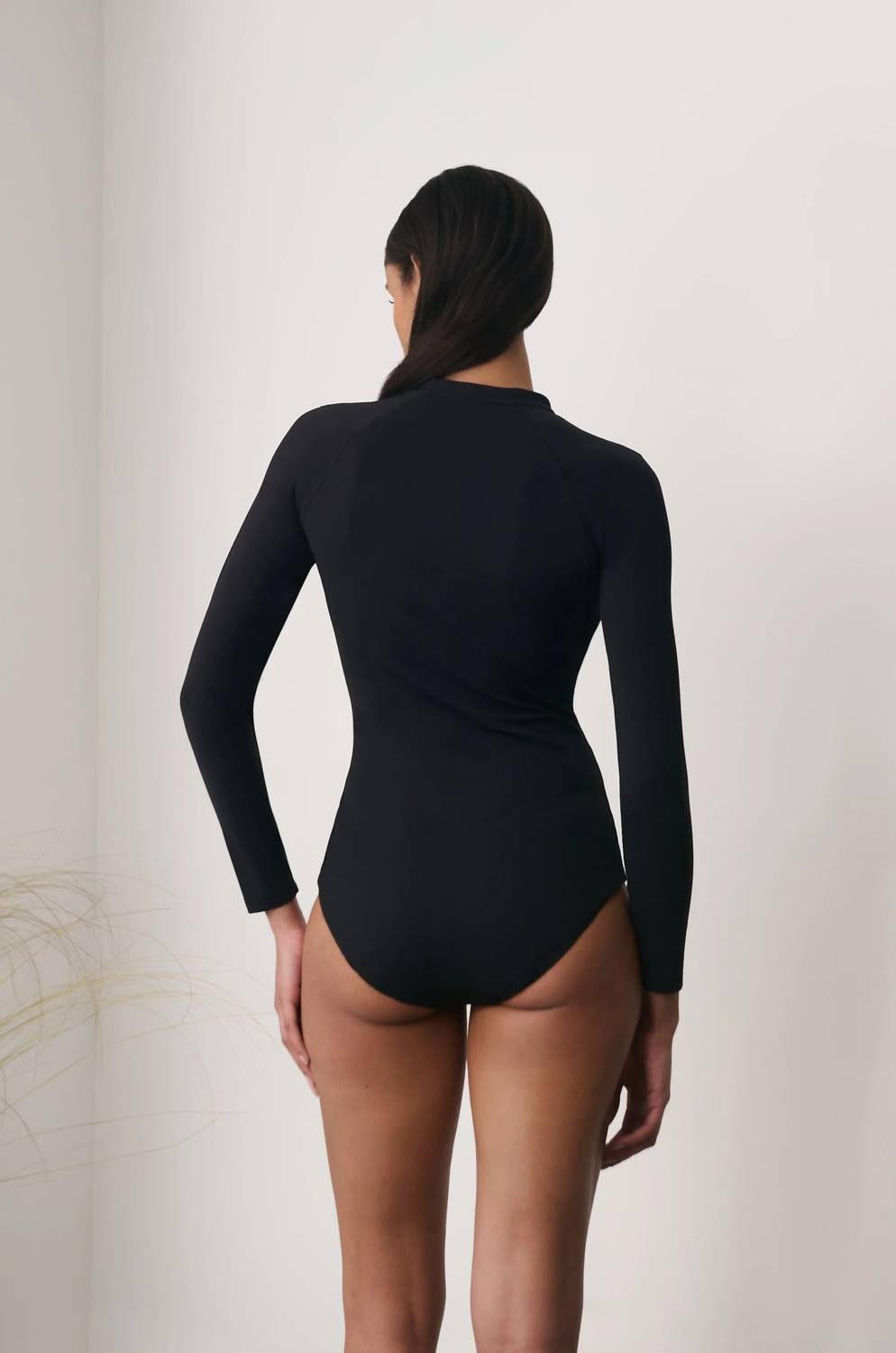 Designed to perfection and fit to flatter. You are going to love this one piece swimsuit. Catch every wave with confidence in the Sofia Surfsuit by Skin, designed for women who desire both style and functionality. This sleek, black one-piece features long sleeves and a convenient front zipper closure, offering medium to full back coverage for a secure fit as you surf. Made from 72% Recycled Polyamide and 28% Xtra Life Lycra, it promises both durability and comfort. Perfect for a summer beach day, this monochrome surfsuit ensures you stay focused on the waves while looking effortlessly chic.