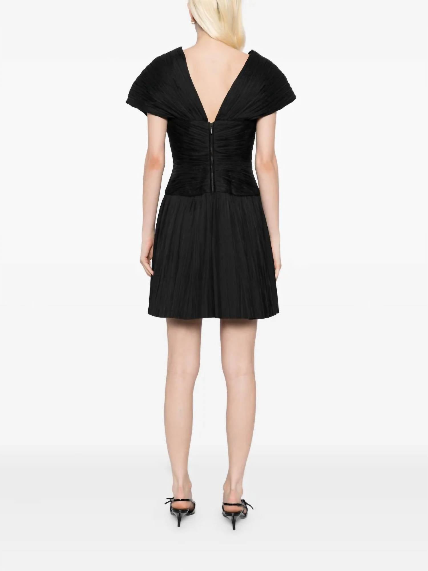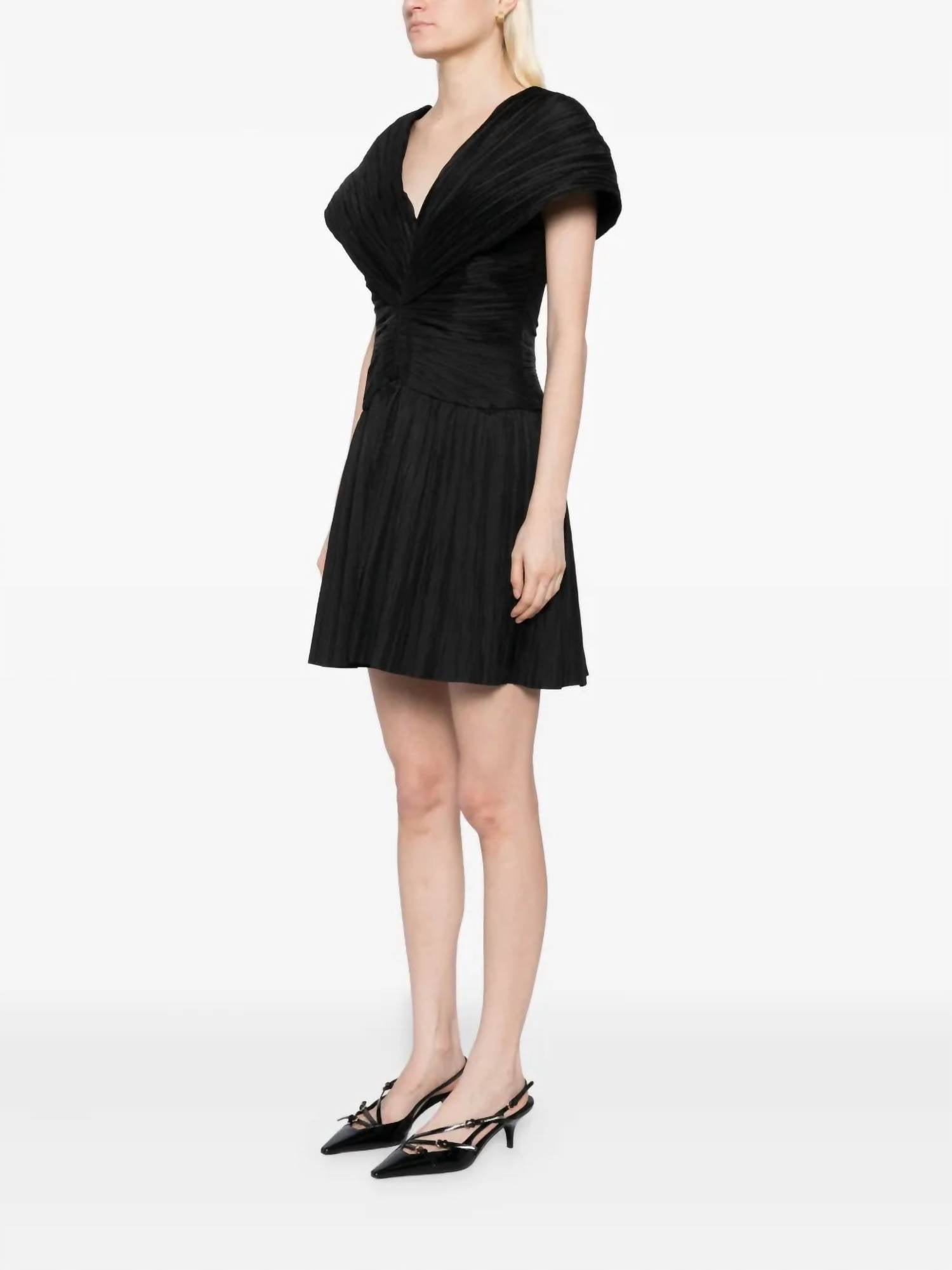 The perfect mini dress for those warmer months. Introducing the Avarie Plisse Mini Dress by SIMKHAI, a chic choice for your summer holiday parties. This V-neck mini dress is crafted from 70% polyester and 30% nylon, featuring an A-line silhouette that enhances its architectural design. Made from plisse material, it is designed with a zip closure for a seamless fit. Imported for quality, this dress makes a sophisticated statement in solid black.
