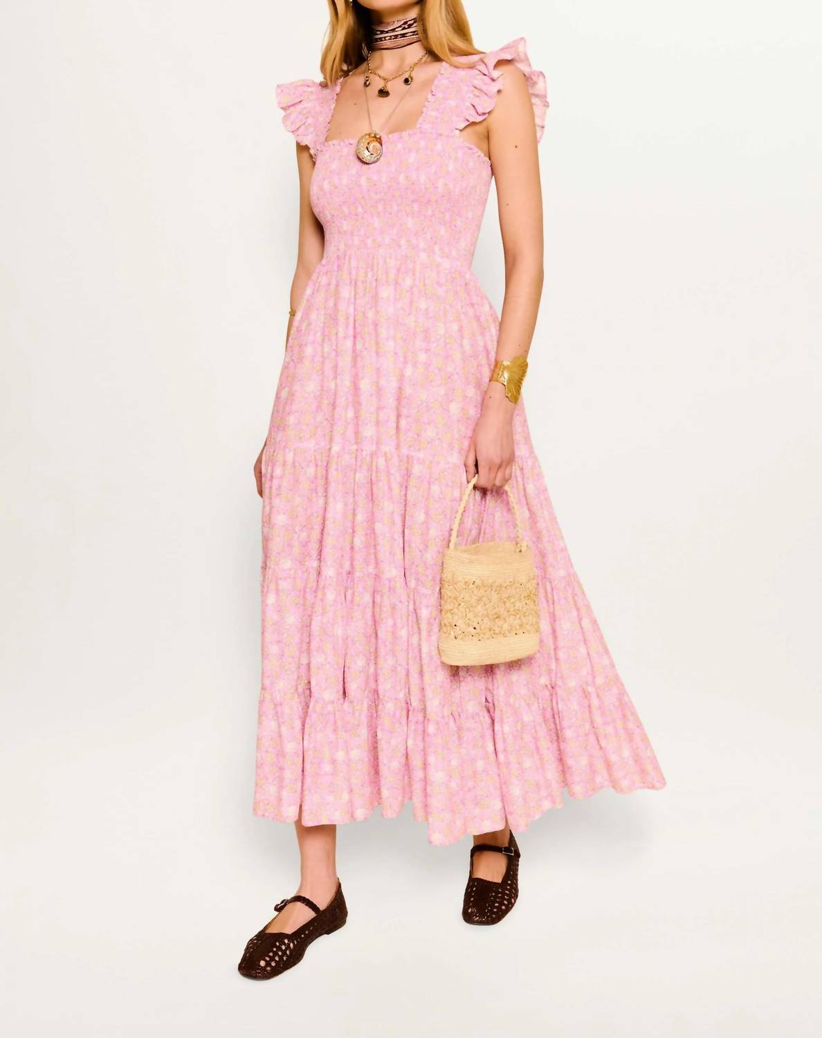 A midi dress so versatile, your options for wearing it are endless. Experience effortless summer elegance with the Kendall Midi Dress by RIXO, a stylish choice for balmy days. This sleeveless dress, in a floral Shell Pansy Blush print, features a flattering squareneck and a bra-friendly open back. Made from 100% cotton voile, it is soft, breathable, and designed with a shirred, slightly fitted bust that floats gracefully from the waist. Closure: Slip-on. Care: Hand wash and line dry.