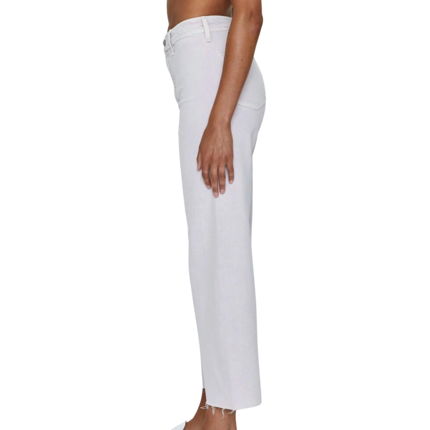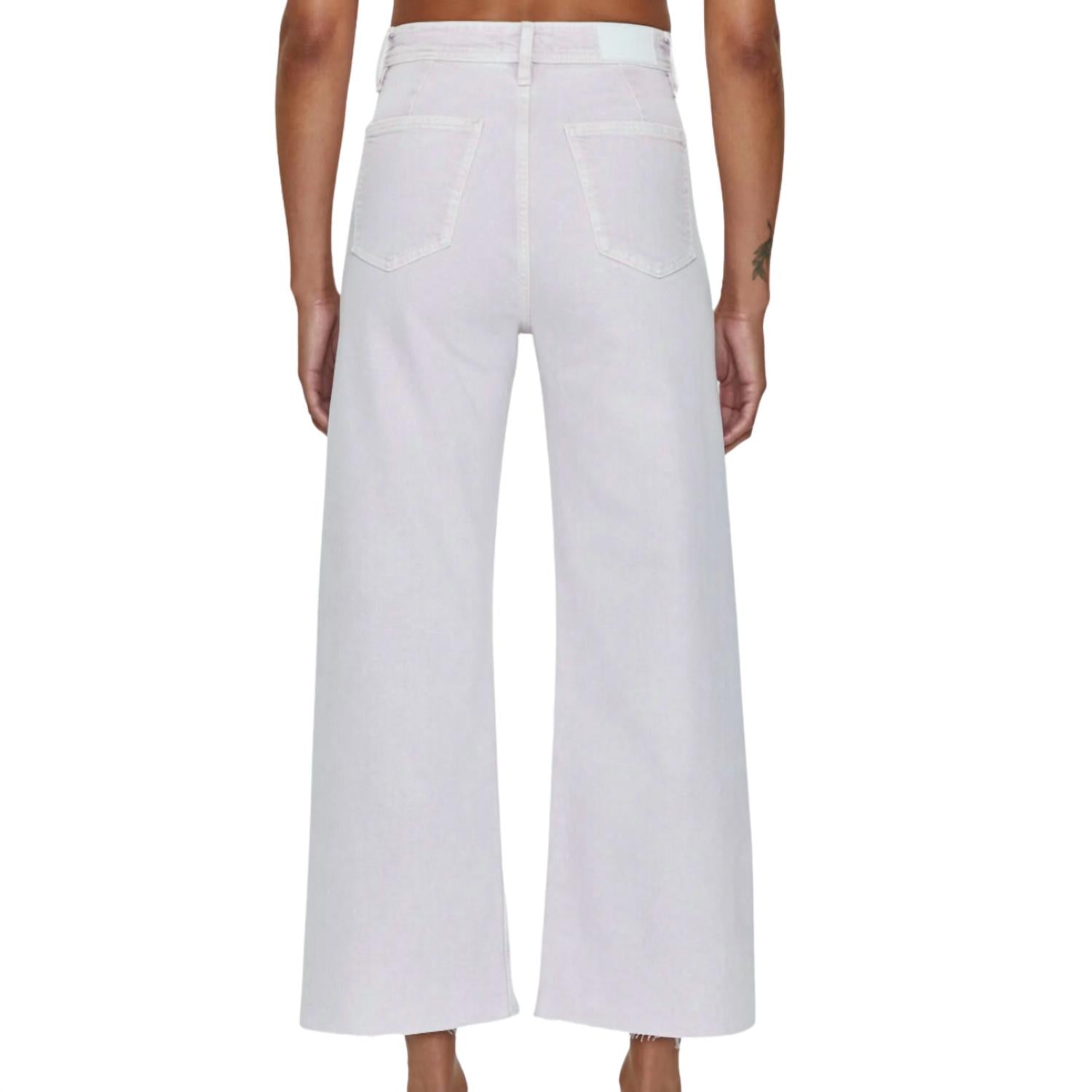 A flattering silhouette that's suprisingly versatile. Pistola Penny High Rise Wide Leg Crop Cotton, Elastane in Lavender Haze Wide Leg Jeans High Rise Cropped Length Scissor Cut Hem Pastel Purple Wash Comfort Stretch Denim Double Stitched Waistline Flat Front No Side Seams Rise 12" Inseam 27" Leg Opening 21" Wash Cold