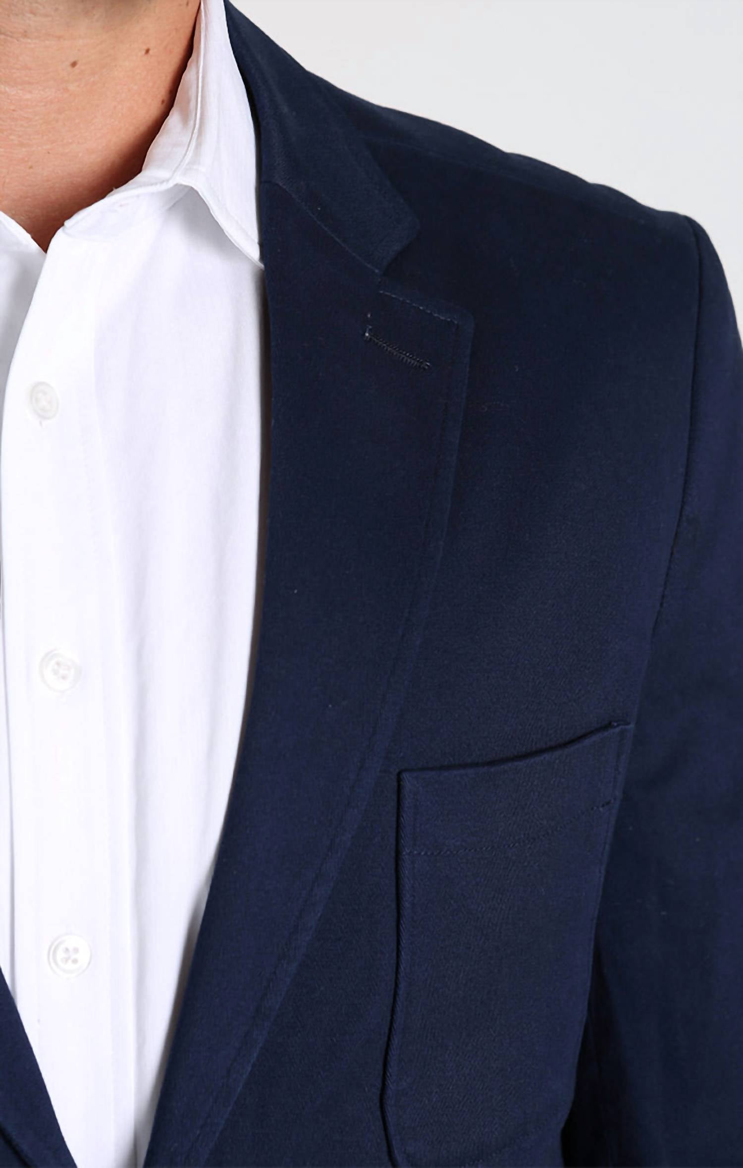 Introducing the Hudson Stretch Twill Blazer by JACHS NEW YORK, a sophisticated addition to your wardrobe in a timeless hue. This men's blazer features long sleeves and a classic fit crafted from a 98% cotton and 2% spandex blend for ultimate comfort and style. Made with a deconstructed design, it offers a practical button closure and is imported. Designed with functionality in mind, it includes two side pockets, a left chest pocket, and three inner pockets.