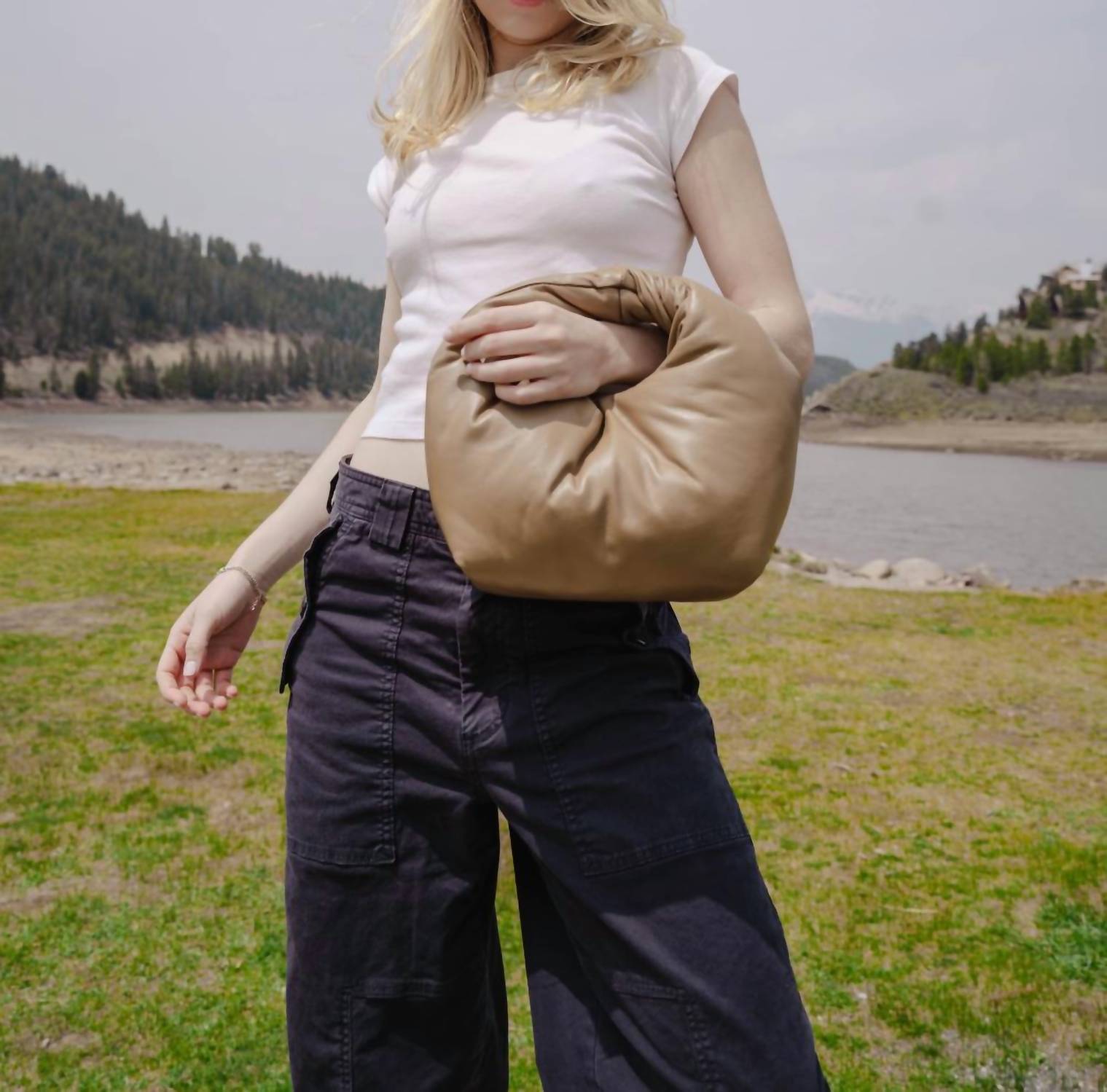 You can never have too many handbags and this hobo bag is no exception. The Women's Mello Top Handle Handbag by Lemiz is a statement piece, crafted with a puffy, cloud-like design in white lambskin. Its marshmallow-inspired shape not only highlights the exceptional quality of the leather but also provides a plush sanctuary for your essentials. With dimensions of 9.25" in height, 11.5" in width, and 8.5" in depth, it offers a spacious yet chic interior. This bag seamlessly combines practicality with tactile beauty, making it a luxurious addition to any wardrobe.